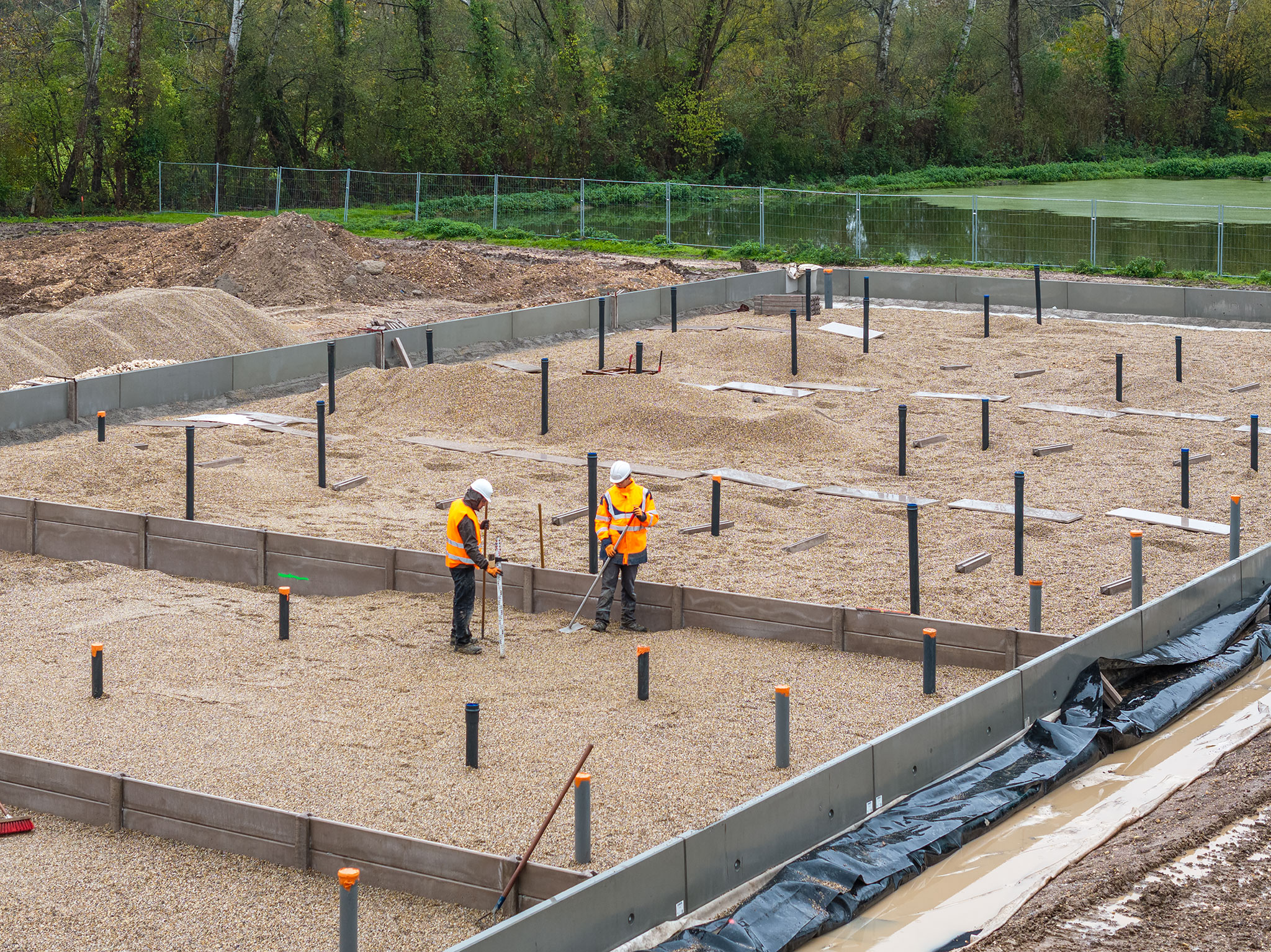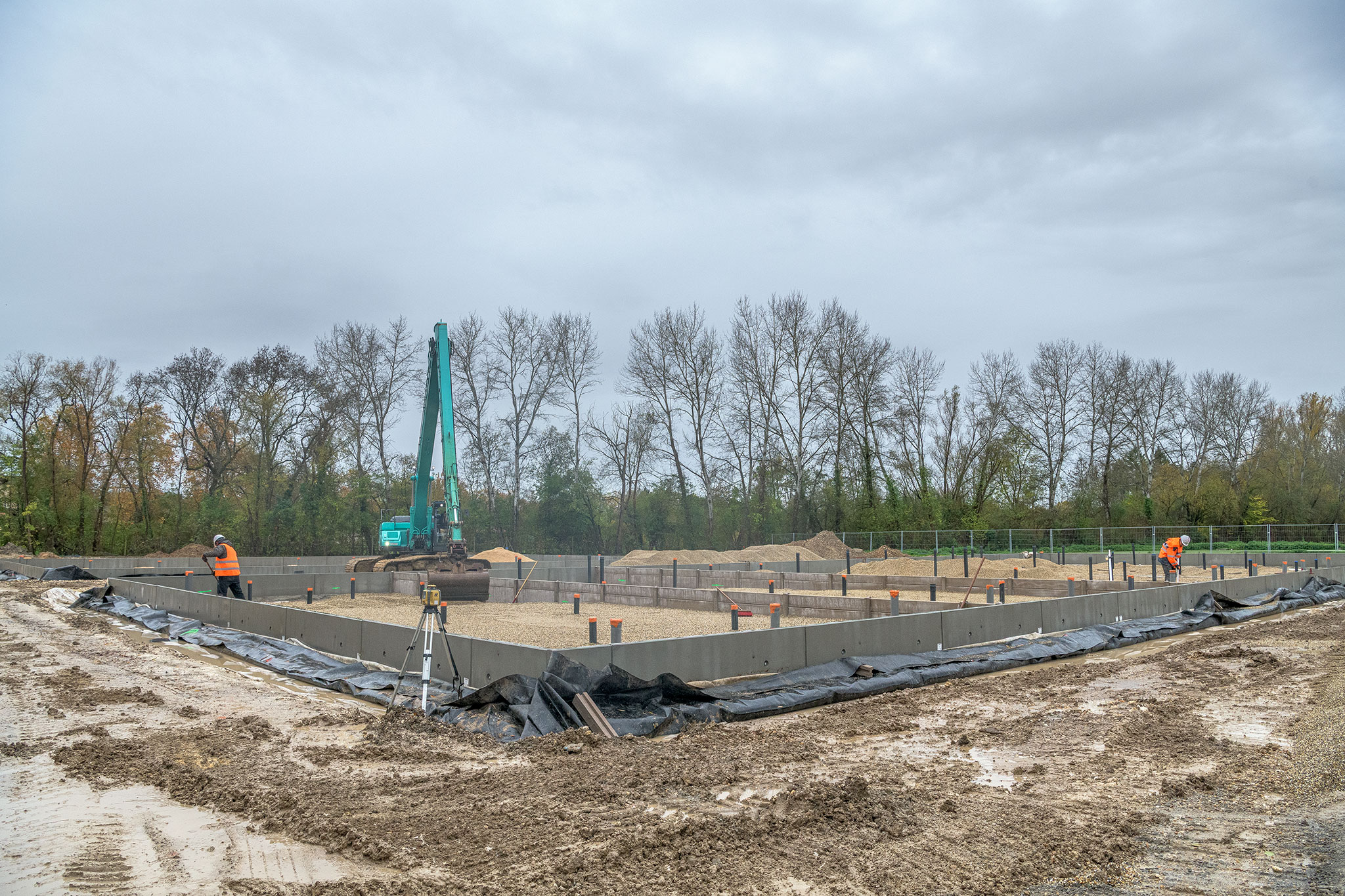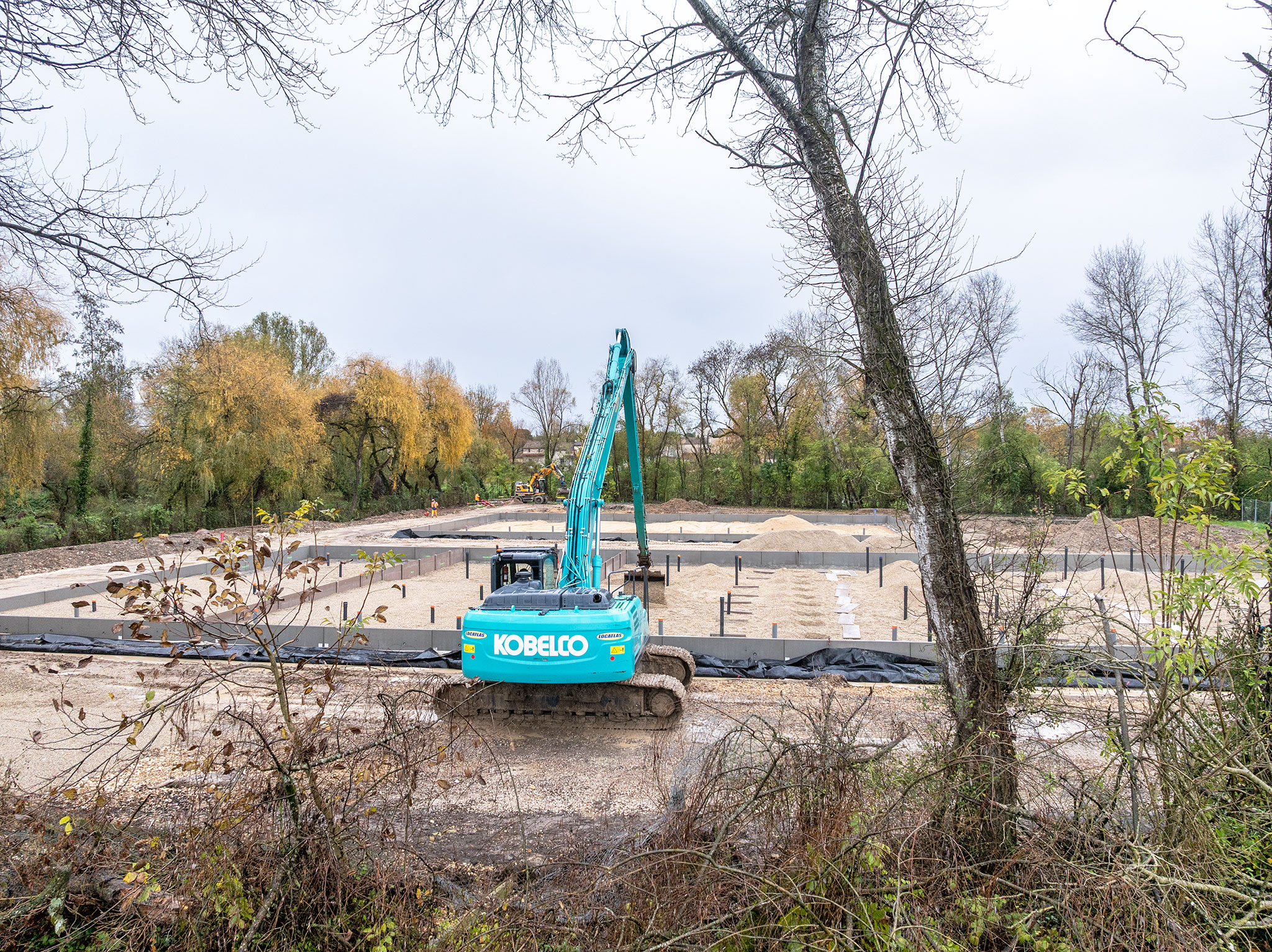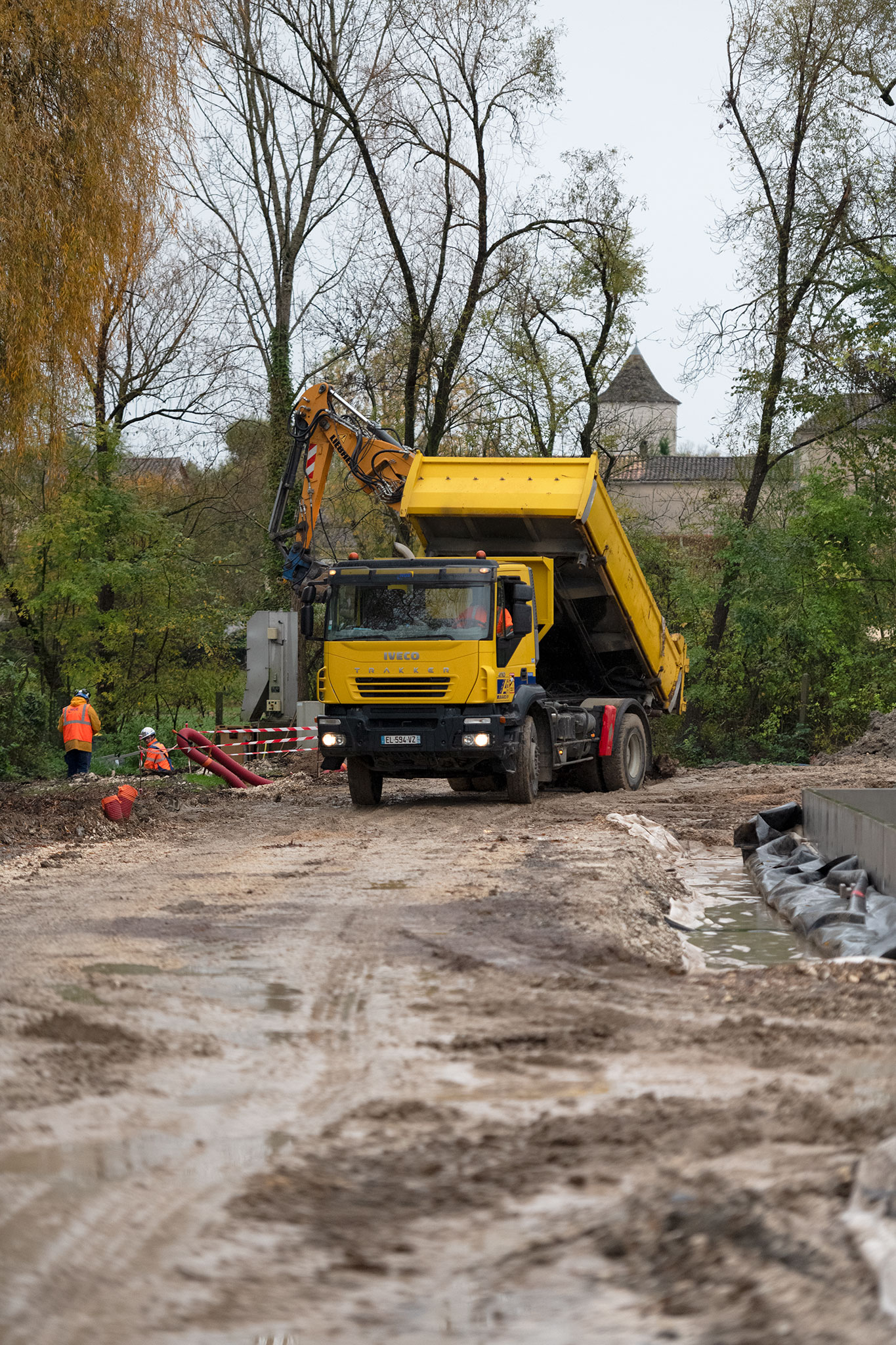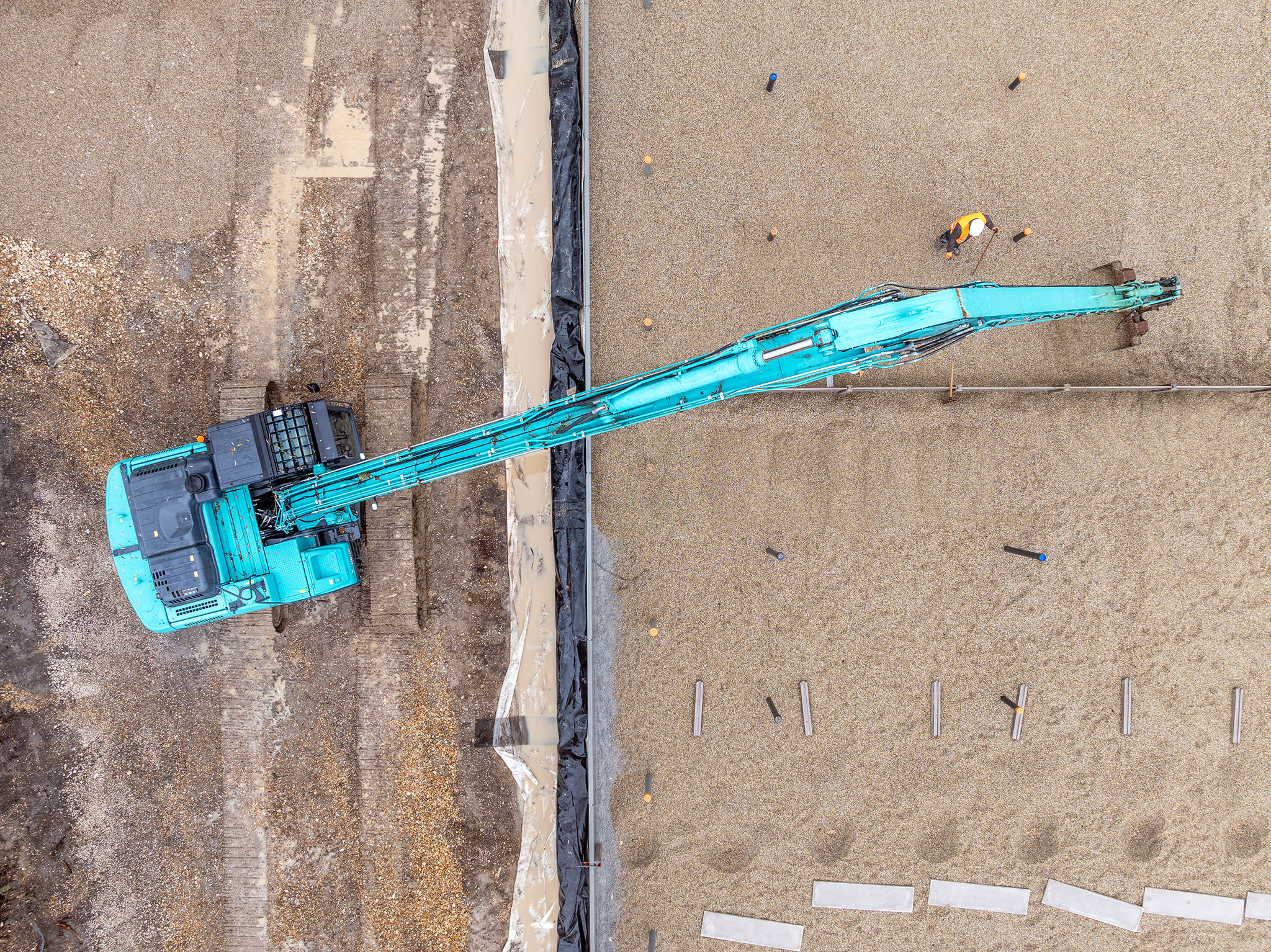 Je suis arrivé tôt sur ce chantier assez éloigné du studio, et sur le coup j’imaginais pour pas grand chose car la pluie était de la partie. Il a fallu patienter 45 minutes que ça se calme un peu. Impossible d’être venu si loin pour rien, j’ai pris le risque de sortir le drone malgré le crachin qui continuait de tomber histoire de faire quelques clichés.
