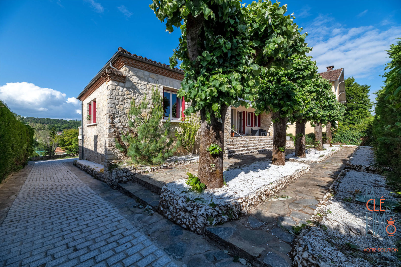 Entrée minérale ouvrant sur un univers de pierre et d’arbres dont le jardin s’ouvre sur un panorama insoupçonnable.