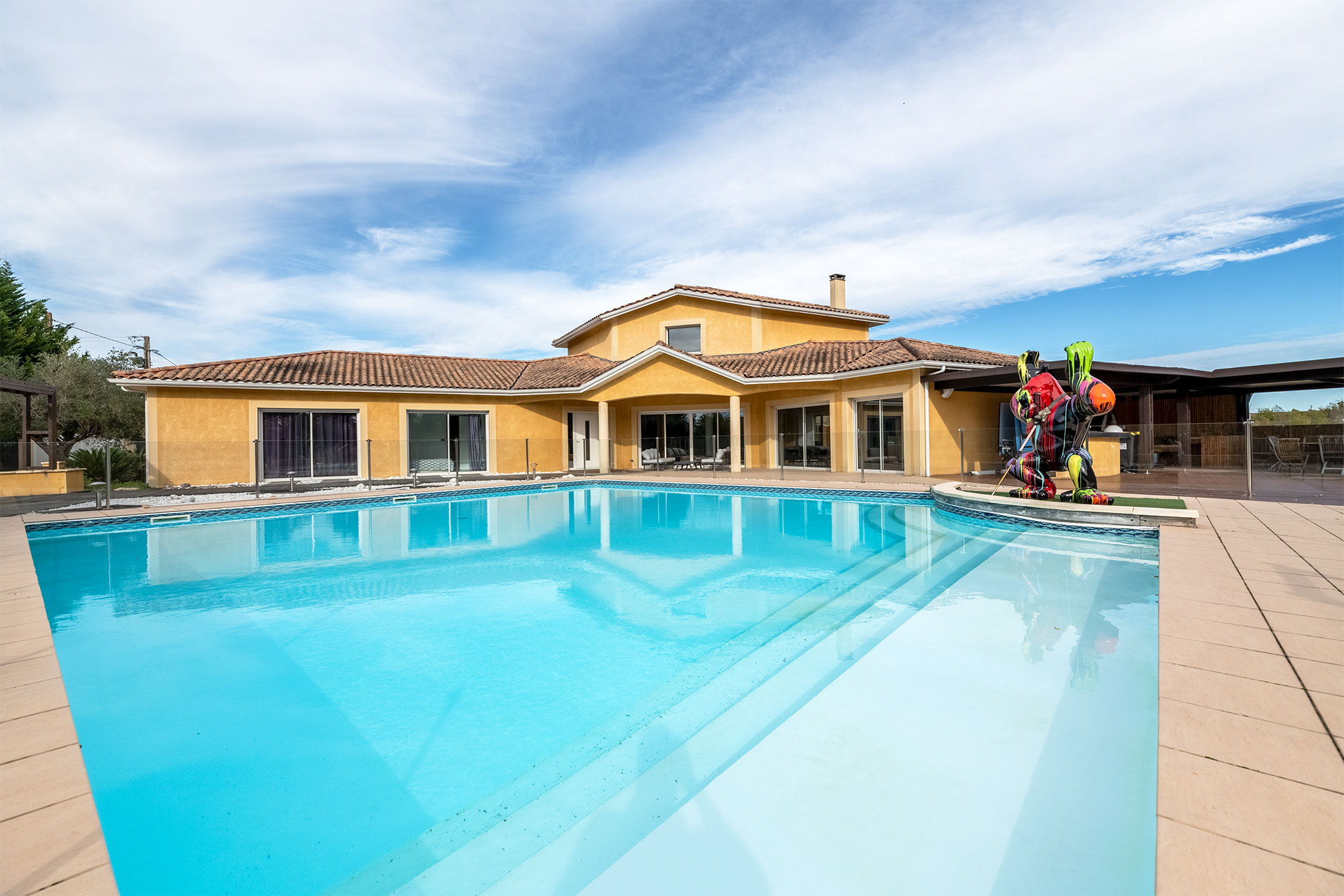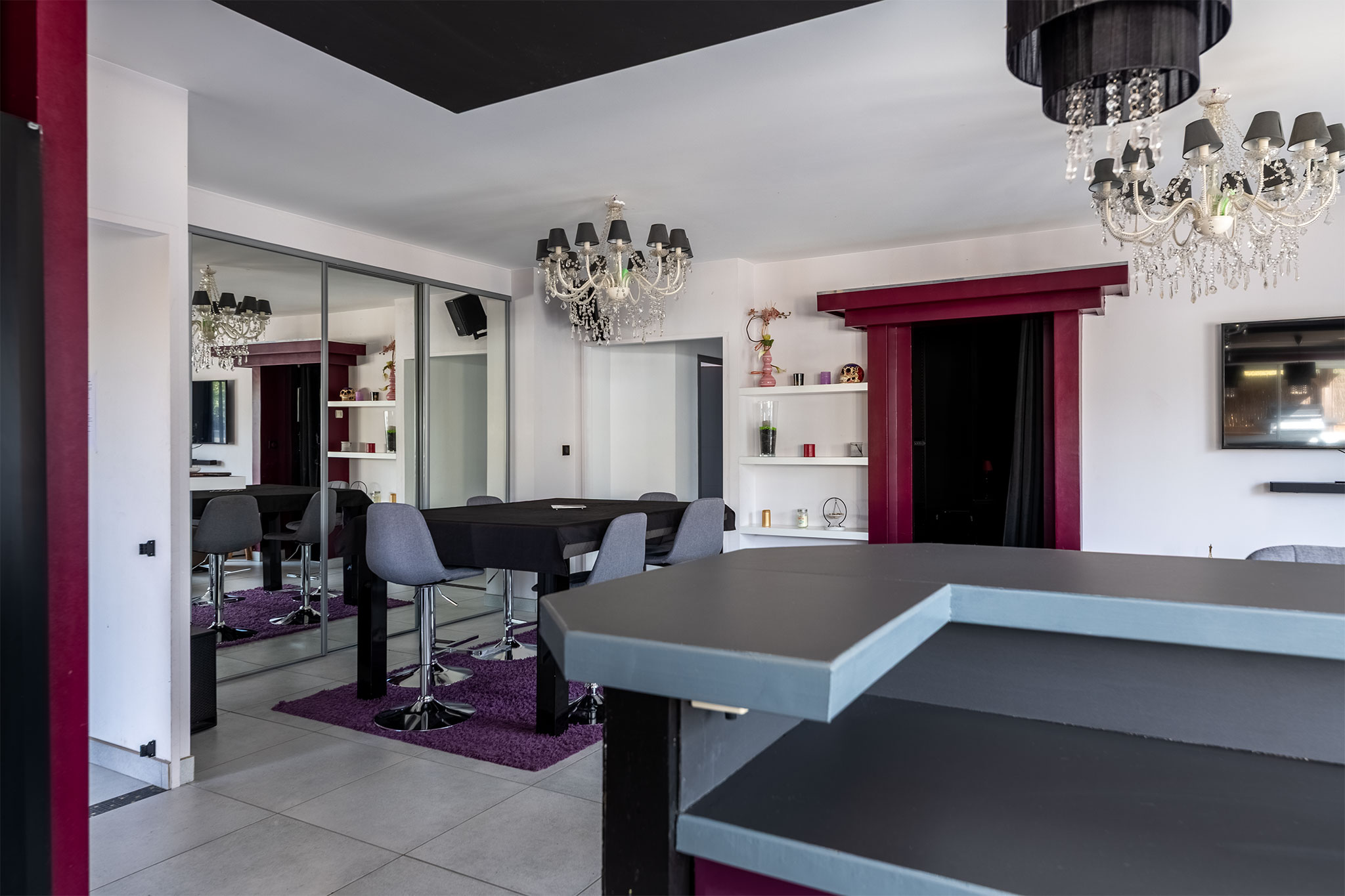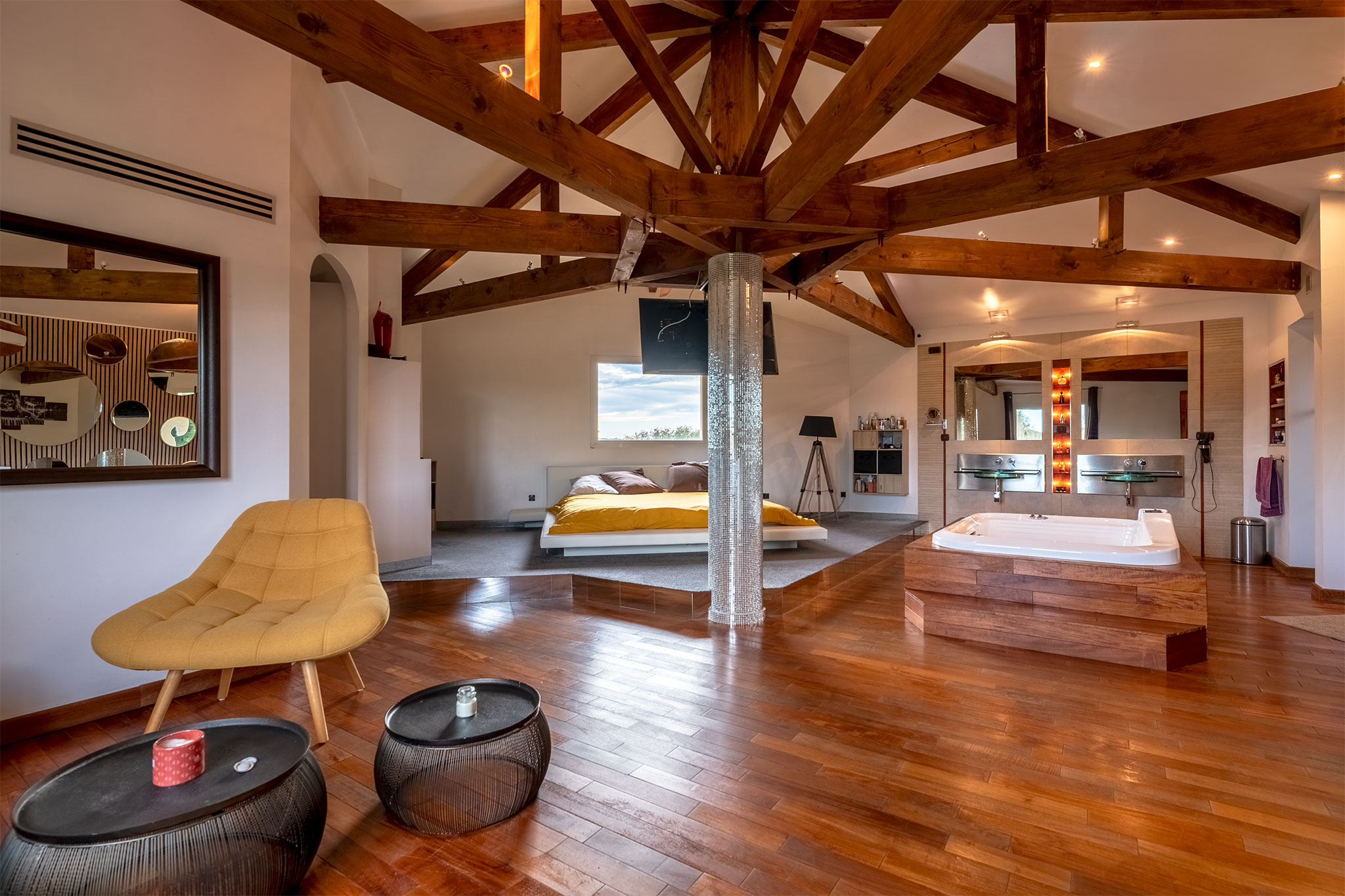 Nous avons donc deux reportages pour le prix d’un… Le gîte comporte deux chambres, une salle de sport, une salle avec sauna / spa et un espace extérieur privatif avec piscine, jacuzzi et un salon cozy pour se réunir entre amis à l’heure de l’apéro (enfin j’imagine). La maison possède une pièce de vie immense, une très grande cuisine, tout plein de chambres (j’ai un peu oublié le nombre) et une suite parentale kolossale (oui ça mérite bien un K vu la surface). Là aussi piscine, jacuzzi, salon extérieur avec coin barbecue…
