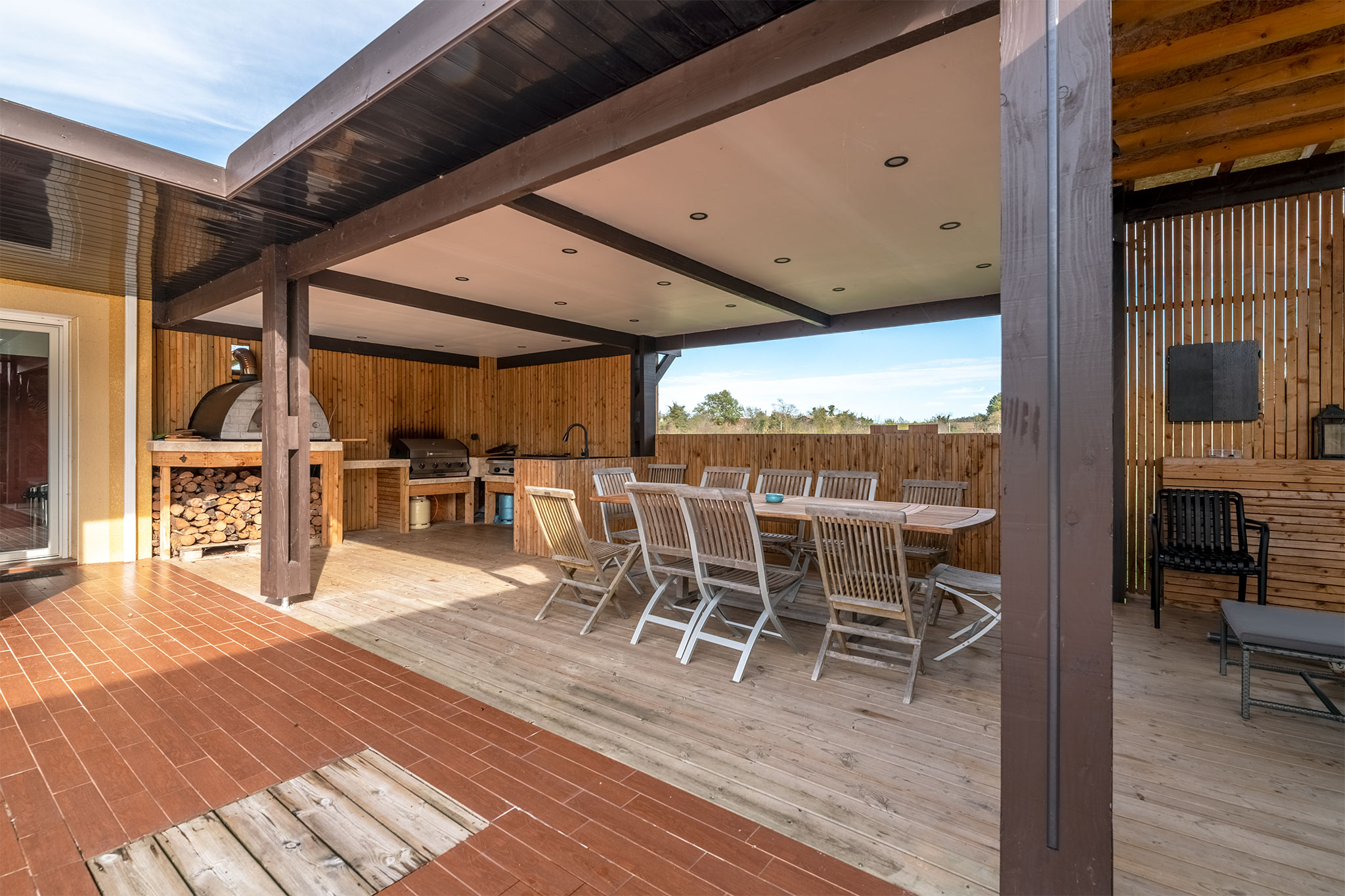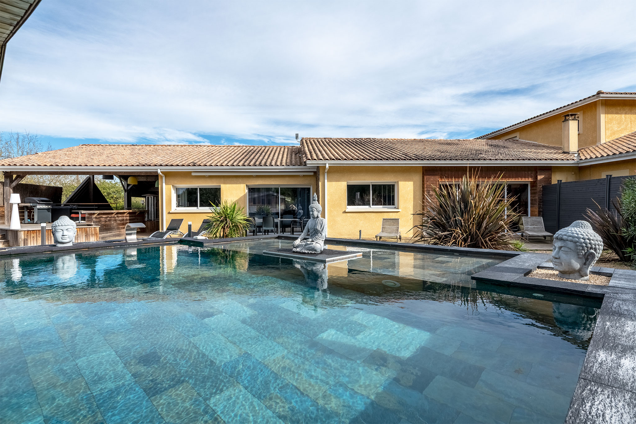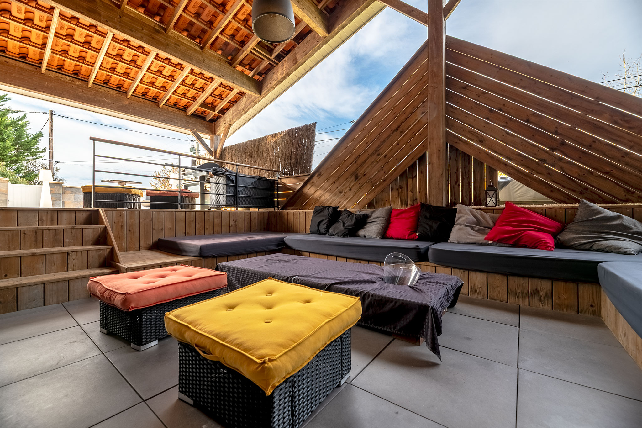 Nous avons donc deux reportages pour le prix d’un… Le gîte comporte deux chambres, une salle de sport, une salle avec sauna / spa et un espace extérieur privatif avec piscine, jacuzzi et un salon cozy pour se réunir entre amis à l’heure de l’apéro (enfin j’imagine). La maison possède une pièce de vie immense, une très grande cuisine, tout plein de chambres (j’ai un peu oublié le nombre) et une suite parentale kolossale (oui ça mérite bien un K vu la surface). Là aussi piscine, jacuzzi, salon extérieur avec coin barbecue…