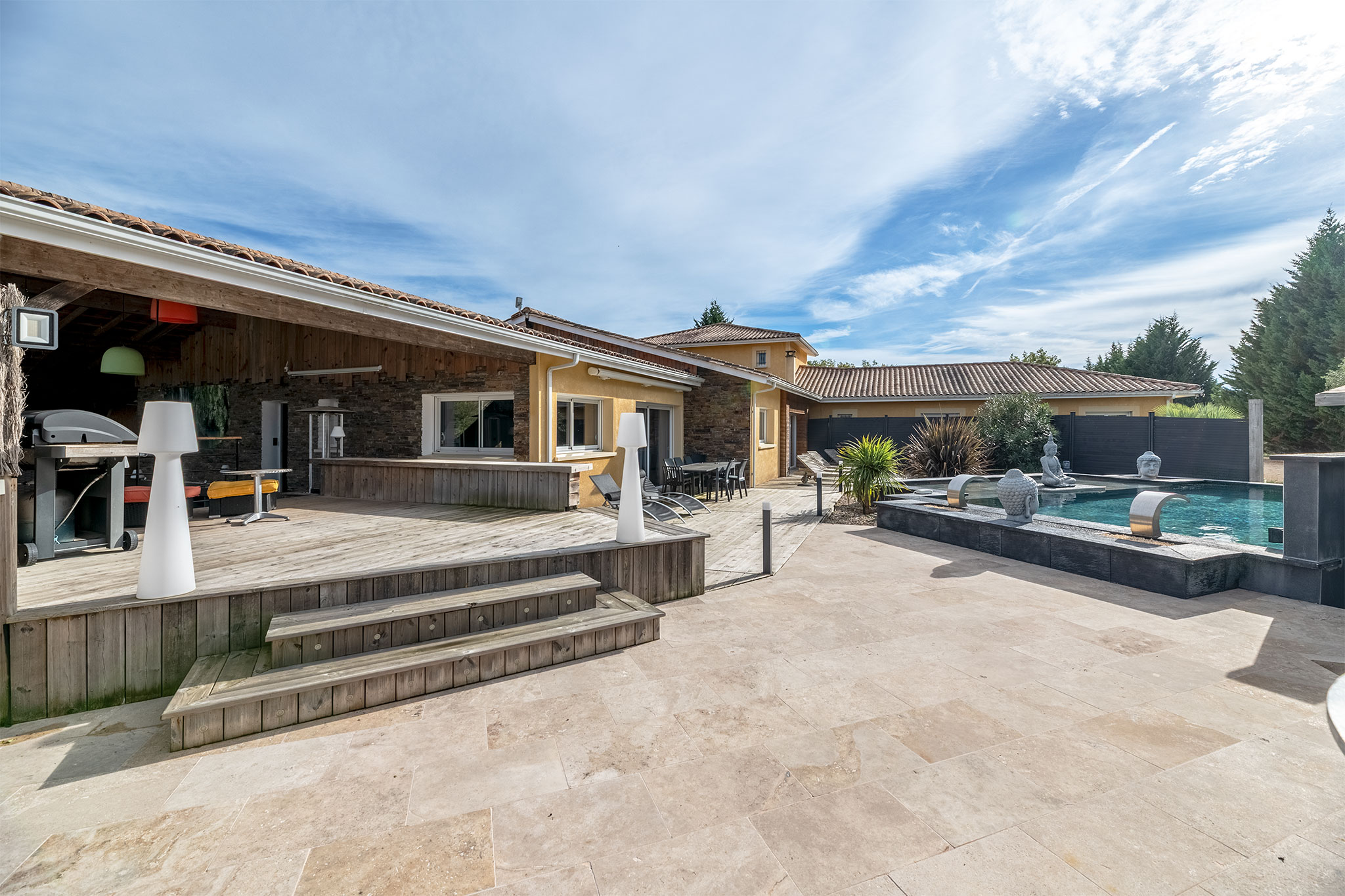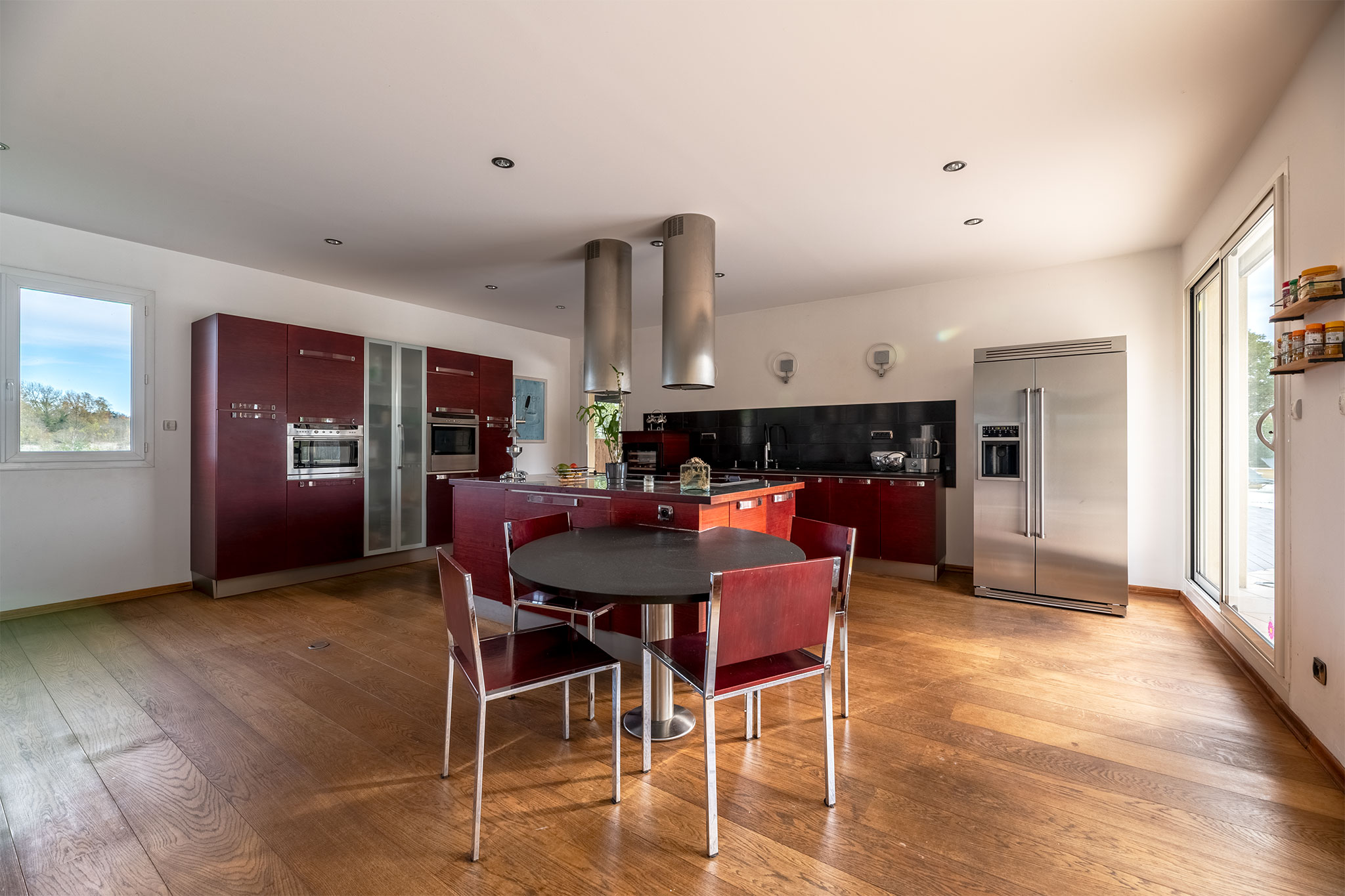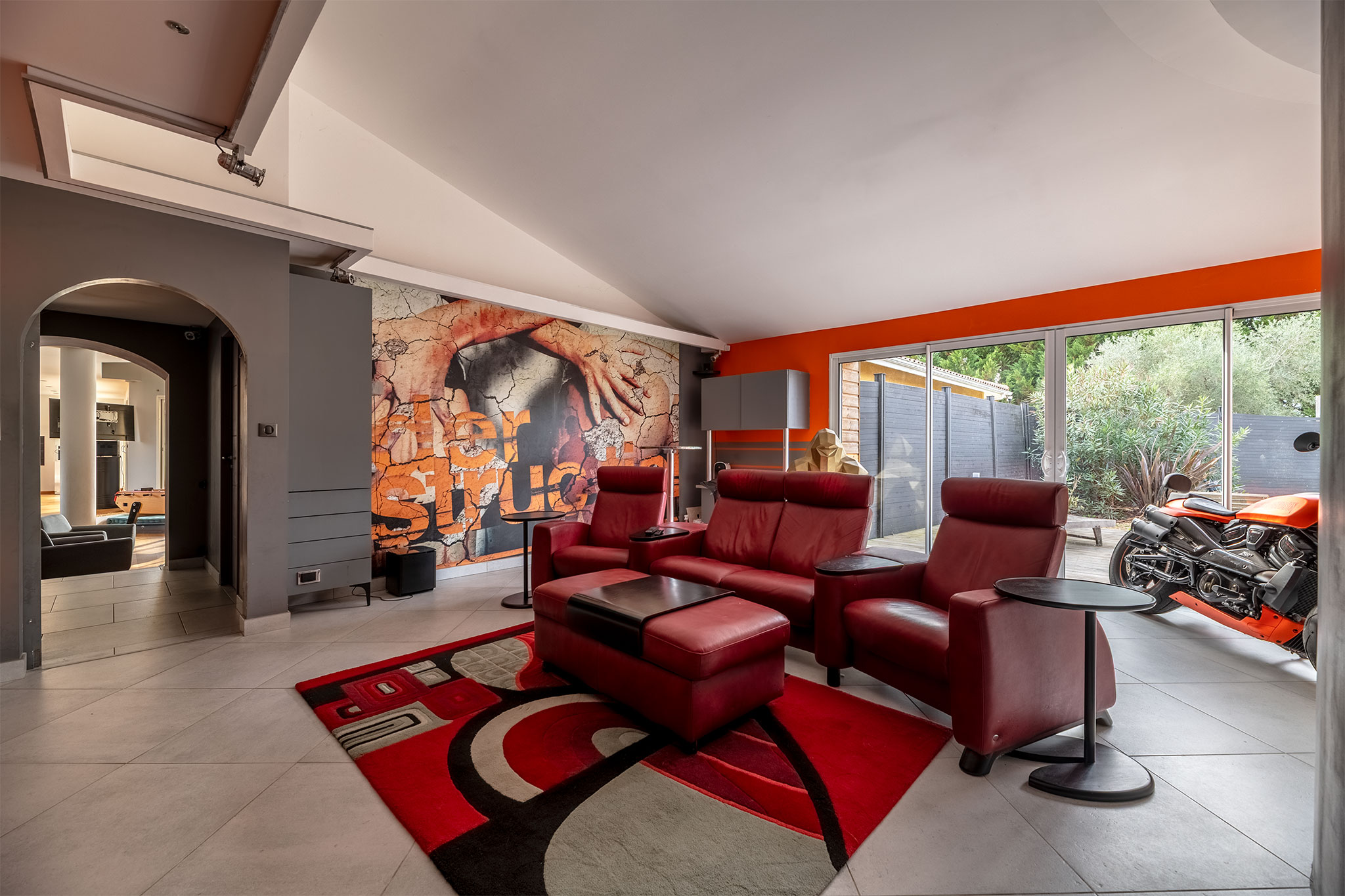 C’est grâce à Damien Vareilhas de Kretz Real Estate que je suis devant cette villa contemporaine difficile à cerner. En fait ce n’est pas une mais deux villas qui sont collées / imbriquées. La volonté du propriétaire étant de vouloir créer un espace gîte et un espace habitation en un même bâtiment. Et le résultat est original.