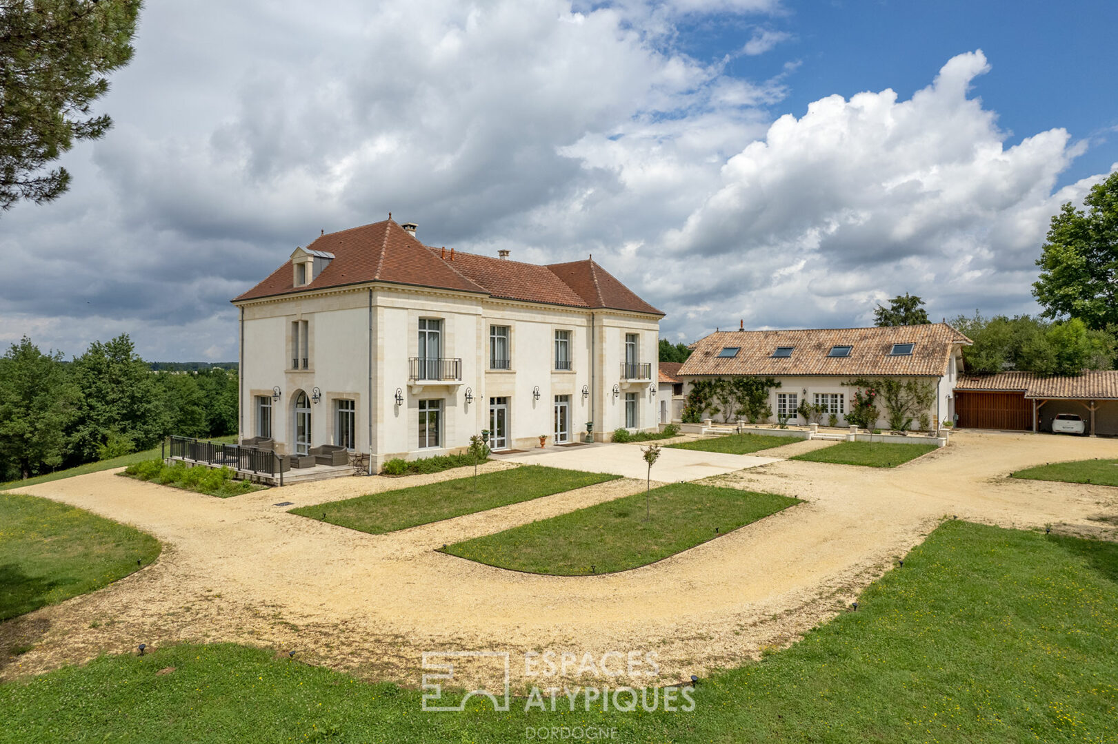 Reportage immobilier près de Bergerac, dans une magnifique propriété qui jusqu’il y a peu était une chambre d’hôte de luxe. Le domaine s’étend sur 6 hectares et possède son propre étang.