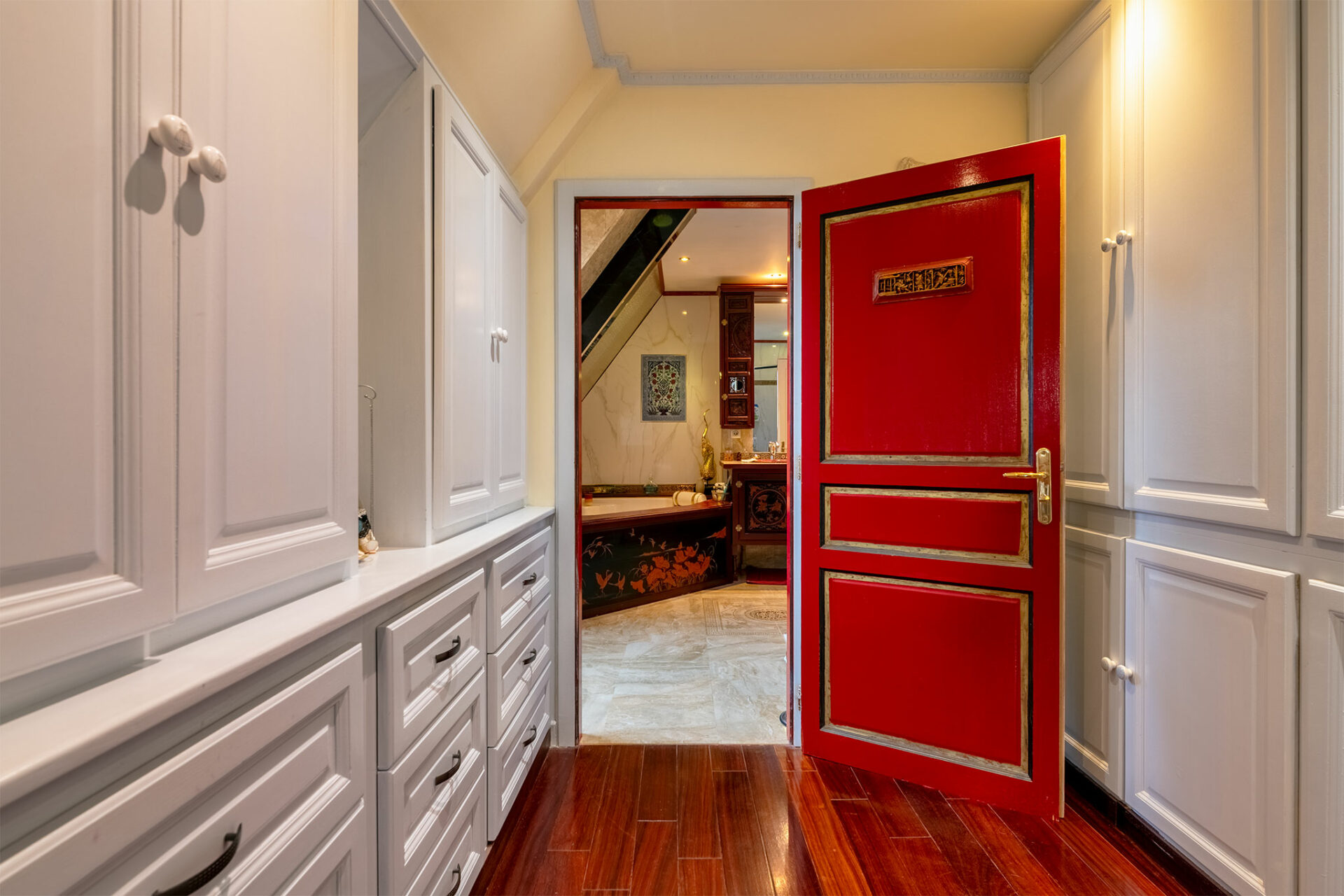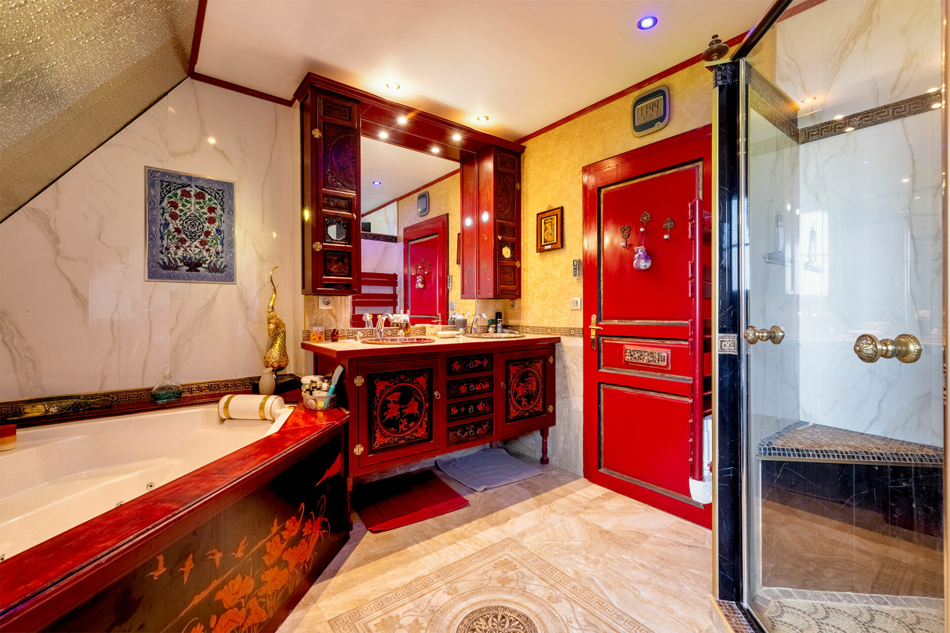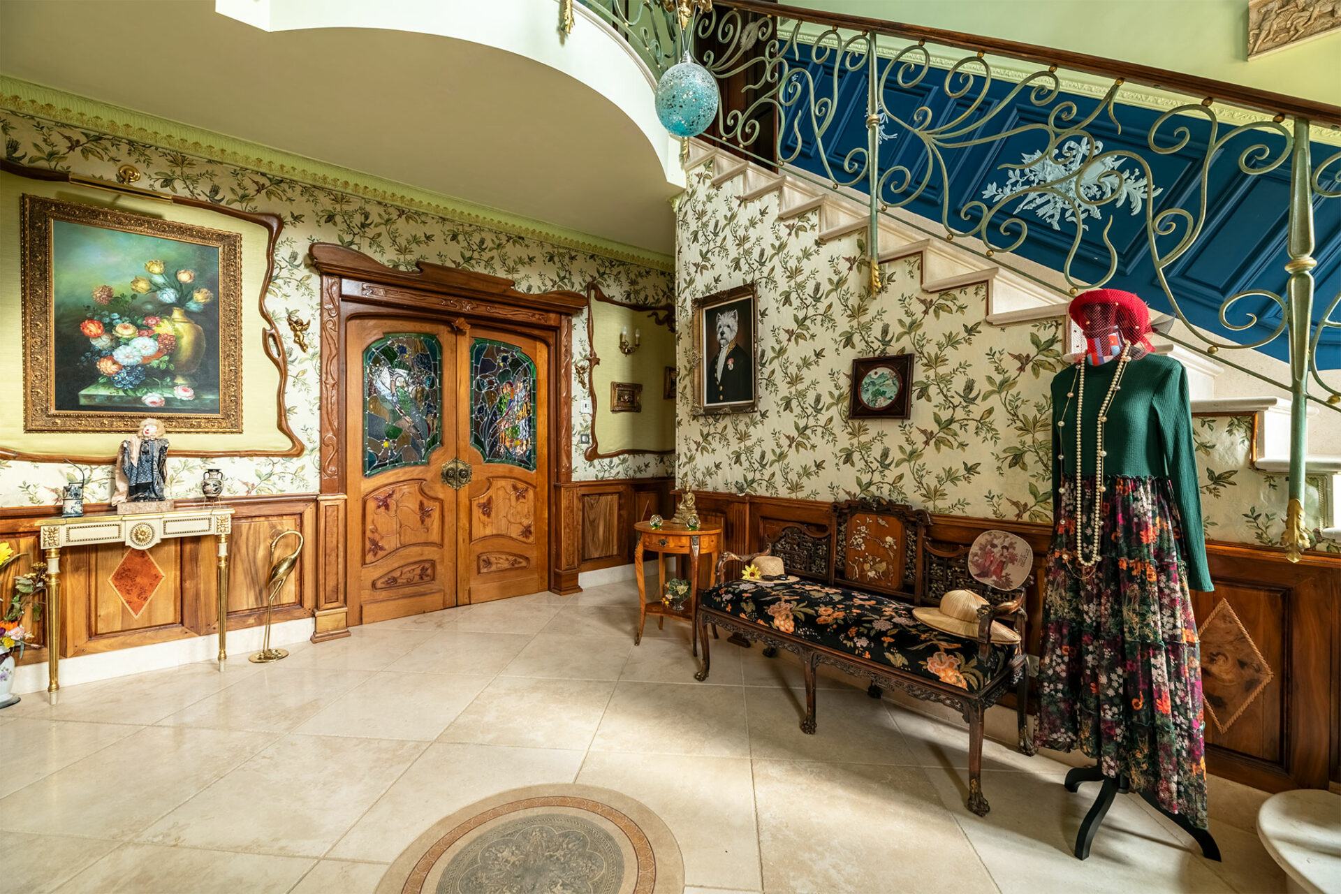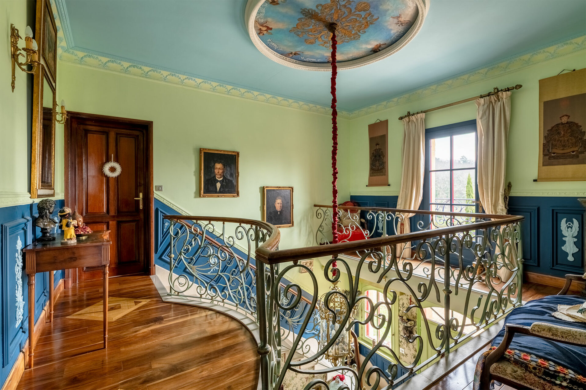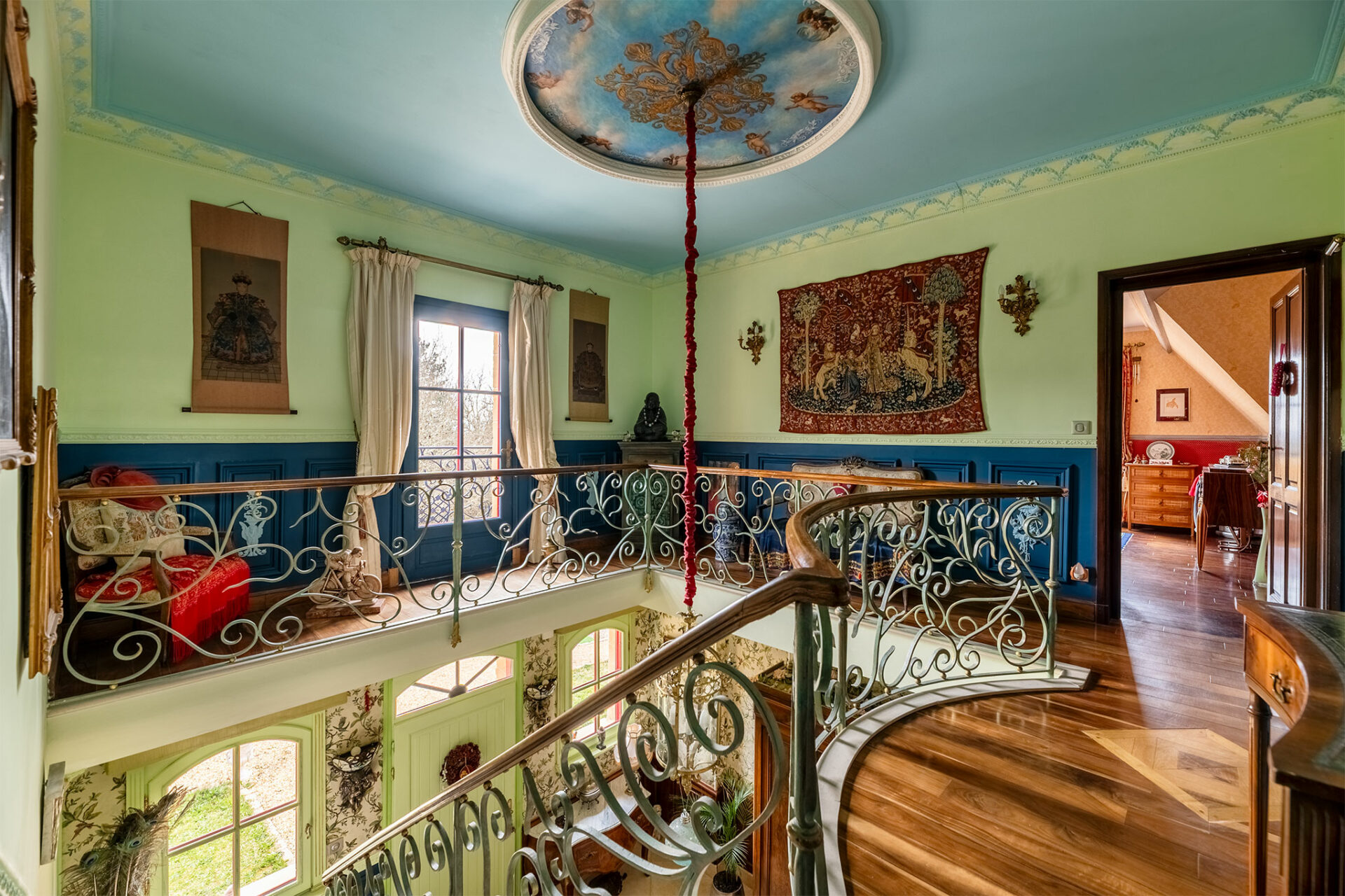 Il s’agit donc d’un petit domaine qui surplombe un joli panorama englobant le château des Milandes. La piscine a été vidée, c’est dommage, mais le charme opère tout de même. Nous sommes en présence d’une jolie périgourdine à l’allure massive et solide des demeures en pierres. Donc on est plutôt sur du traditionnel, mais le tradi s’arrête dès que l’on franchit la porte pour laisser place à une explosion de couleurs… Je vous laisse profiter du spectacle :