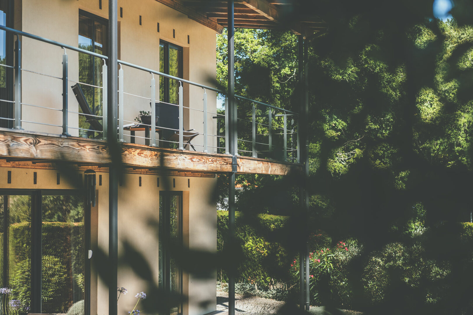 Ceci dit le bien est situé dans un quartier que je ne connais pas, dans les (très) hauts du Toulon. Il s’agit une maison bioclimatique lovée dans un beau jardin fleuri au fond d’une allée. C’est très tranquille, et encore très vert au moment de mon passage. La maison est de style contemporain, avec un étage possédant sa propre terrasse en forme de L. Vous pourrez voir sur les photos que la vue est très sympathique.