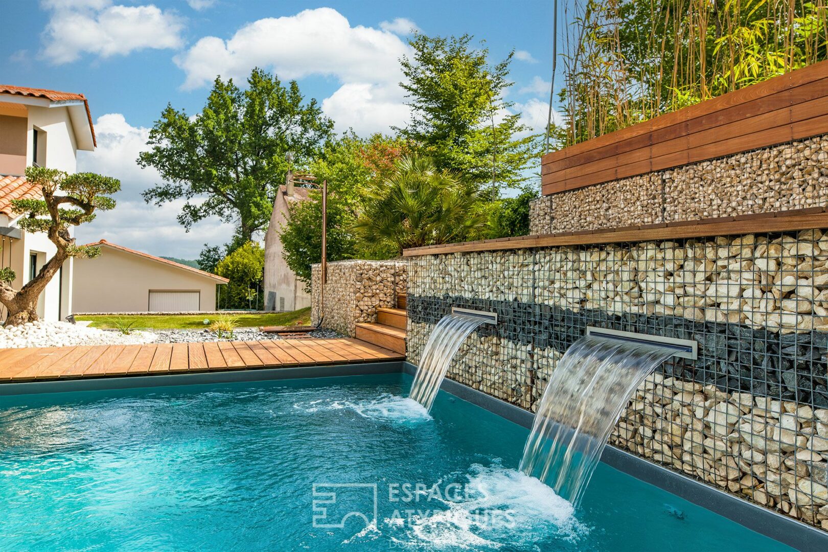 Direction les hauteurs de Coulounieix, à côté de Périgueux, afin de réaliser un reportage immobilier pour Céline Cordeiro d’Espaces Atypiques Dordogne. Pas de château, pas de manoir, pas de gentilhommière… Il s’agit d’une maison contemporaine aux lignes modernes avec un beau jardin en terrasse paysagé avec goût. Le quartier est super calme et la maison possède une vue dominante sur une partie de Périgueux.