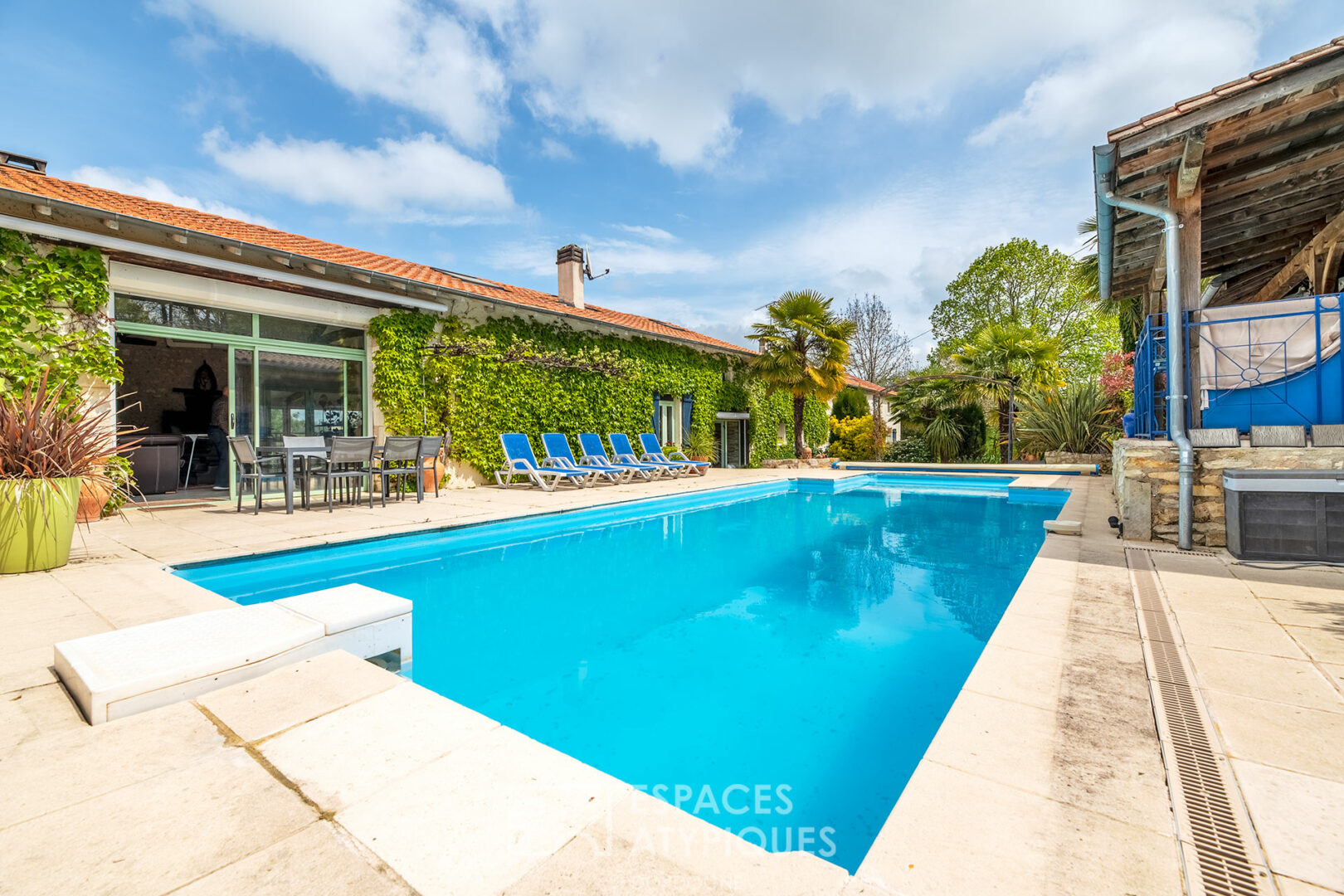 Séverine Verduzier entre un bien atypique situé à Coursac et me demande d’y réaliser un reportage immobilier. Au départ j’ai cru photographier un gîte, ou une maison d’hôte tellement tout appelle au farniente.