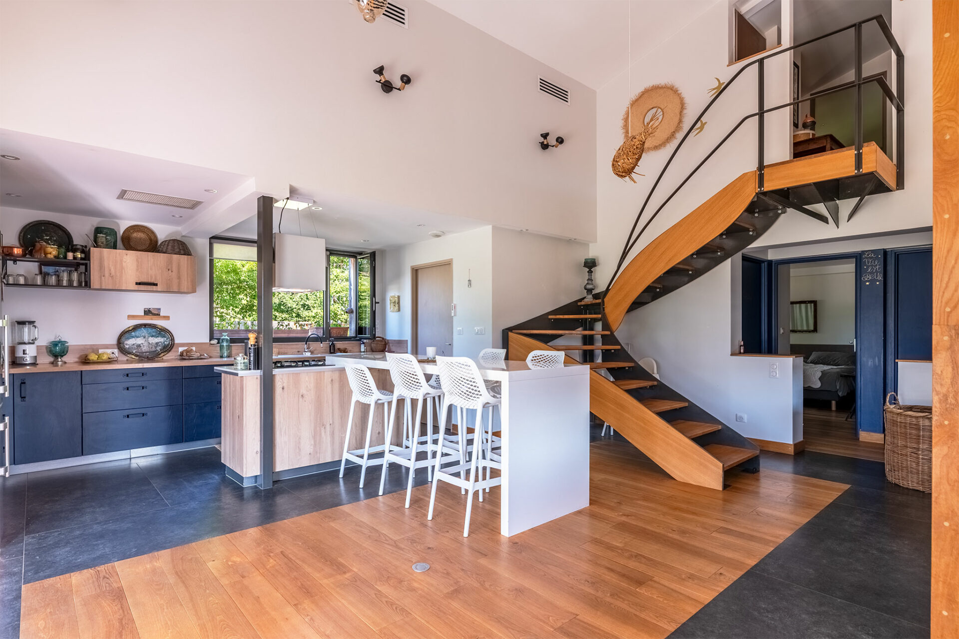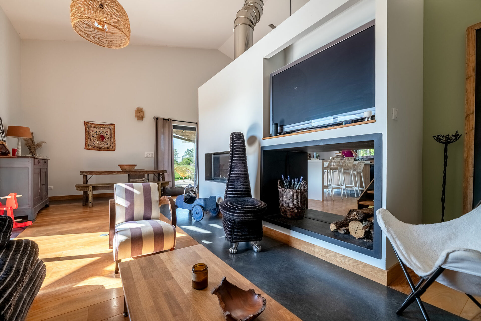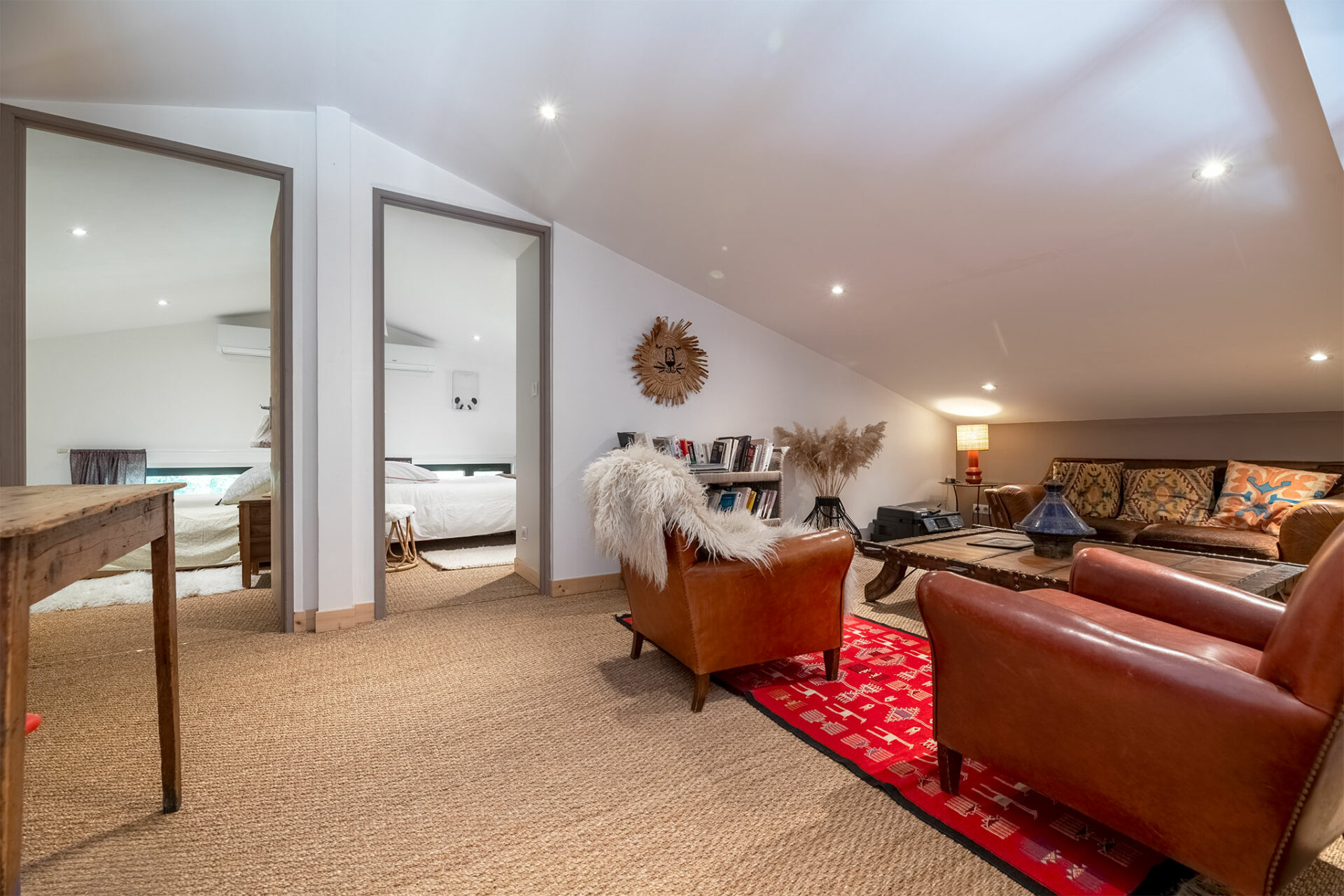 L’intérieur est tout aussi moderne et sympathique que l’extérieur. C’est lumineux, joliment décoré et le salon donne envie d’en voir plus…