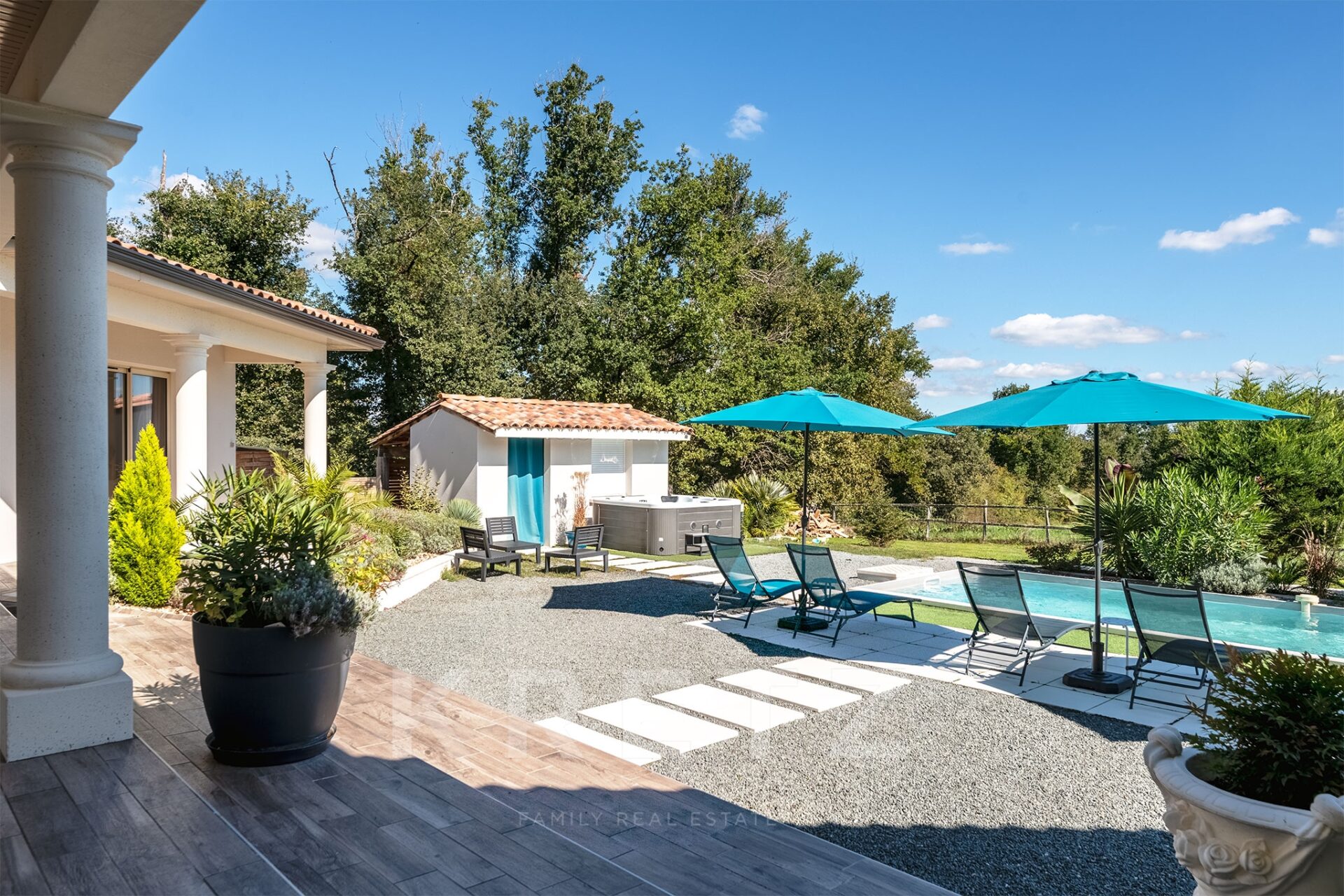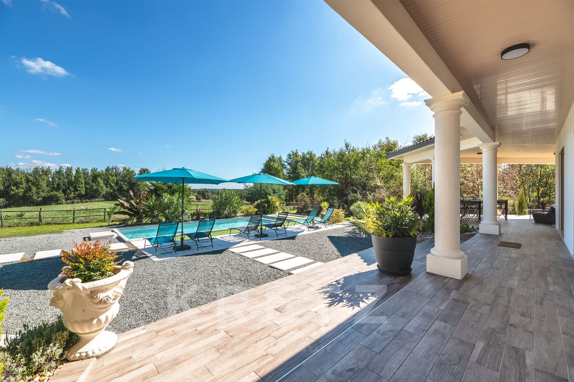 Reportage immobilier dans une villa contemporaine à Festalemps pour le compte de Kretz Real Estate.