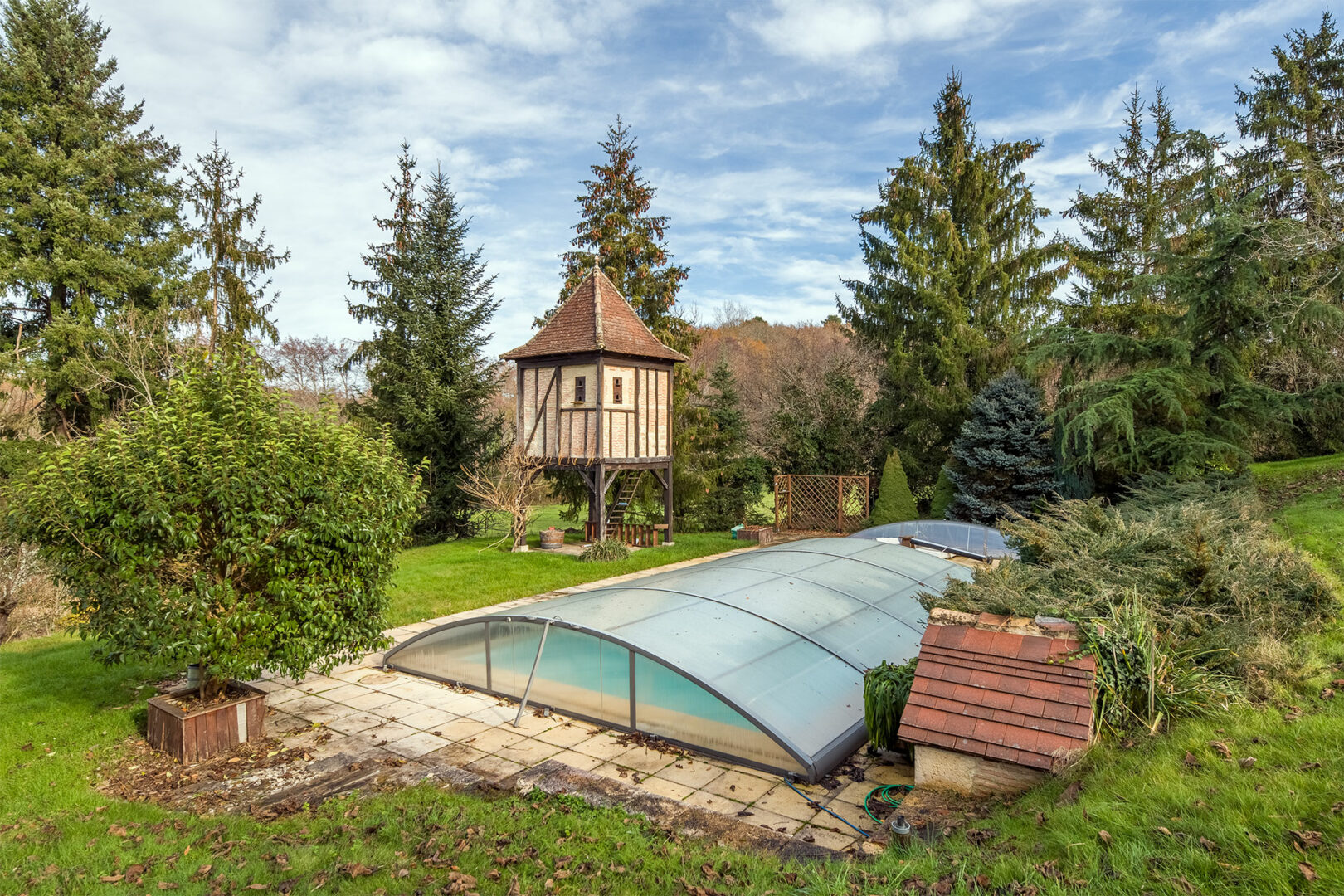 Un peu en contrebas de la maison un pigeonnier en excellent état domine une grande piscine couverte. pas de vis à vis donc tranquillité assurée pour les adeptes de la baignade sans maillot.