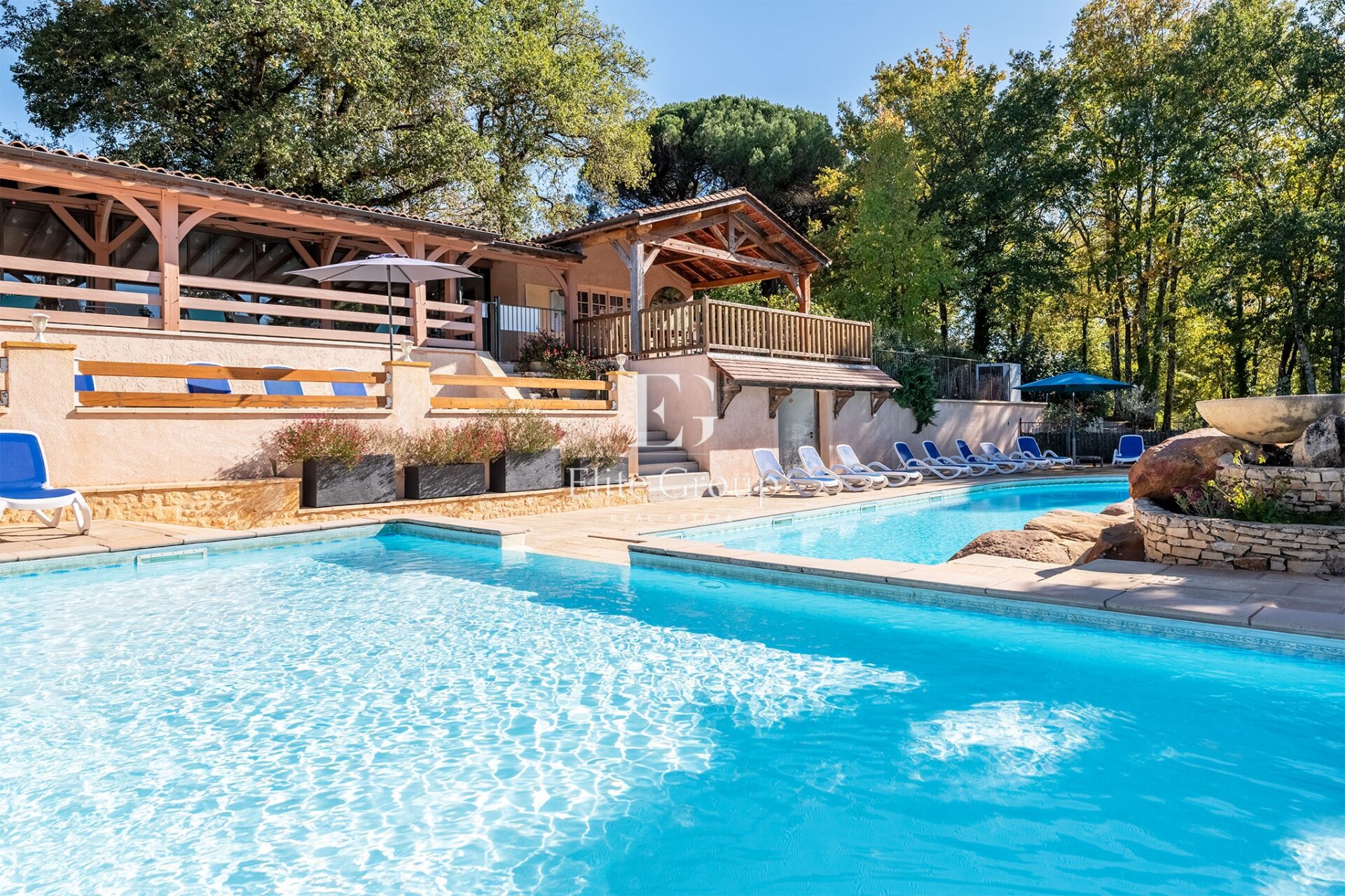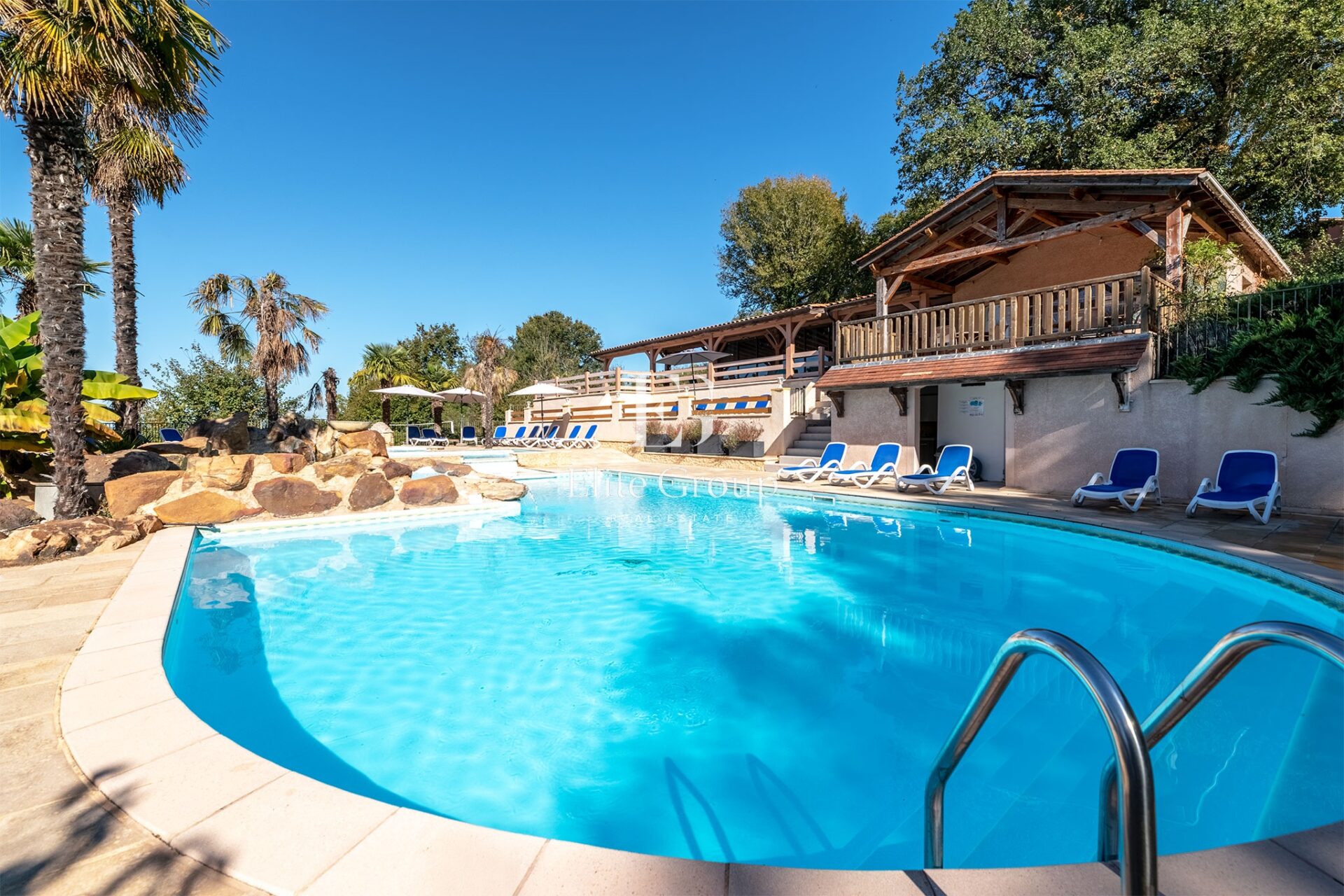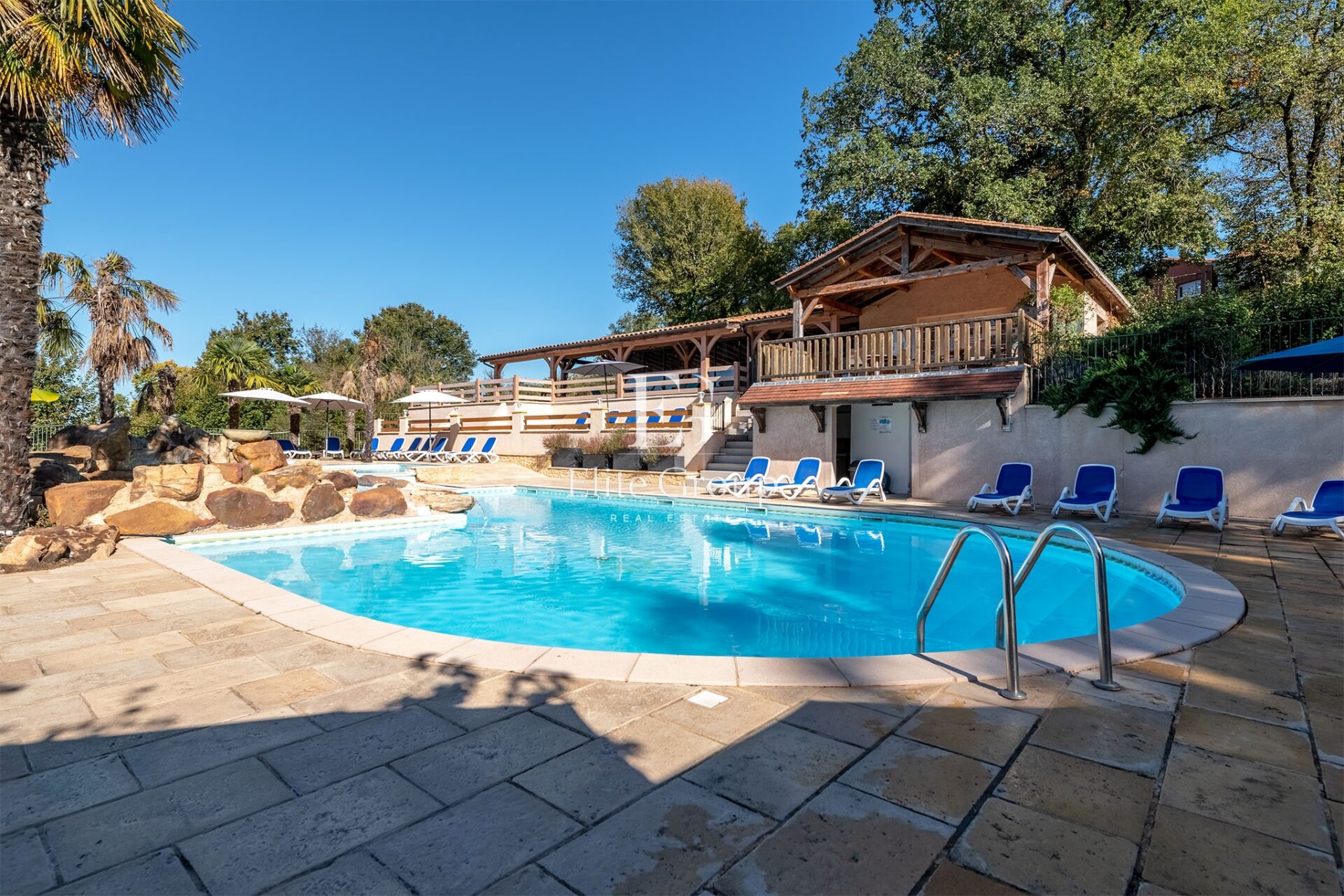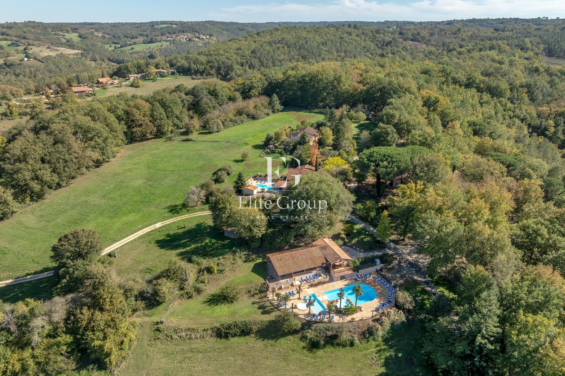 Reportage immobilier pour Elite Group à Larzac. Non pas sur le plateau du Larzac, rien à voir, mais à Larzac, petite commune située dans le sud de la Dordogne. Il s’agit d’un complexe touristique constitué de 14 gîtes, d’un minigolf, d’une piscine monumentale dominée par un poolhouse assez extraordinaire et de deux maisons d’habitation.