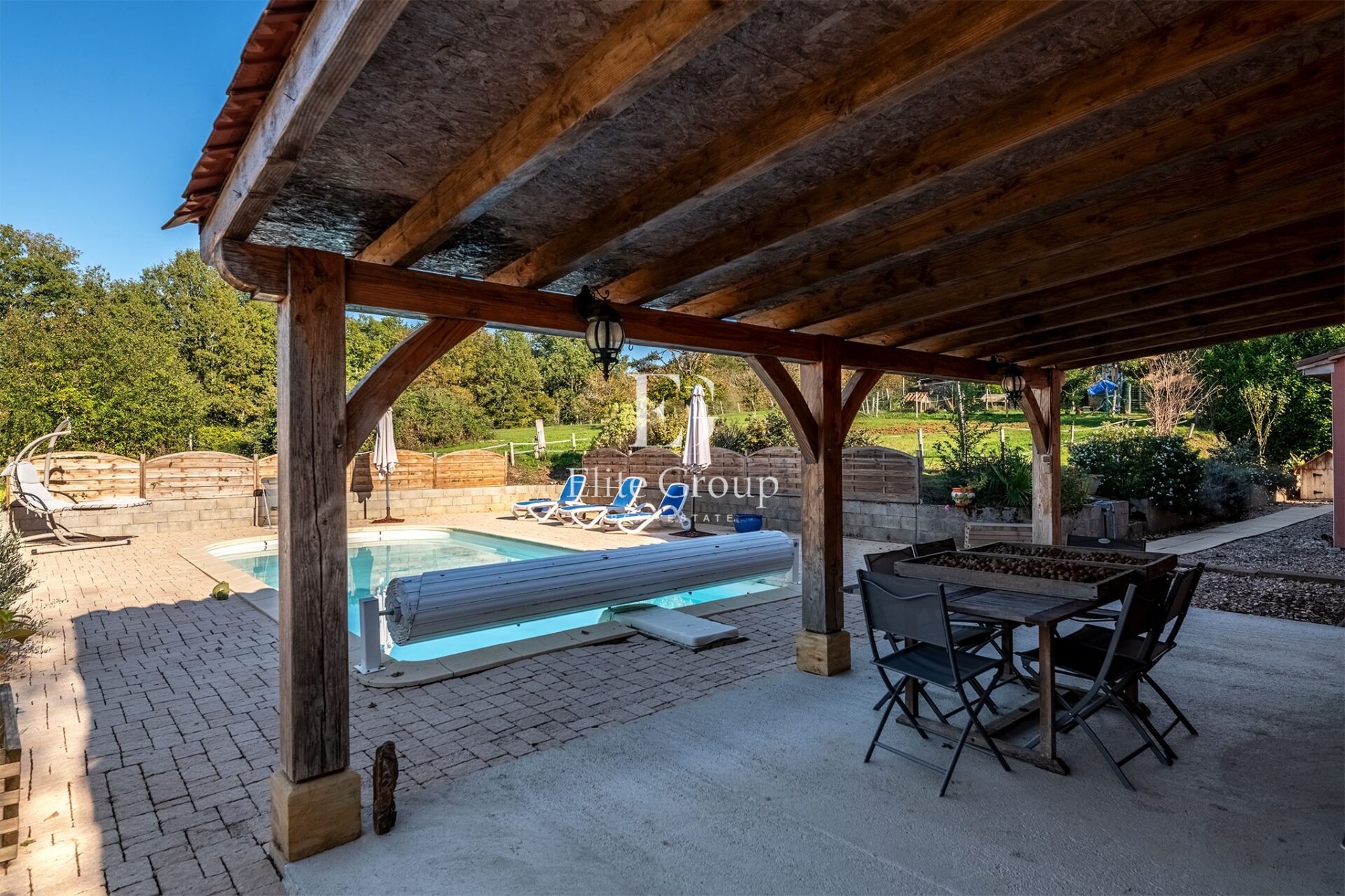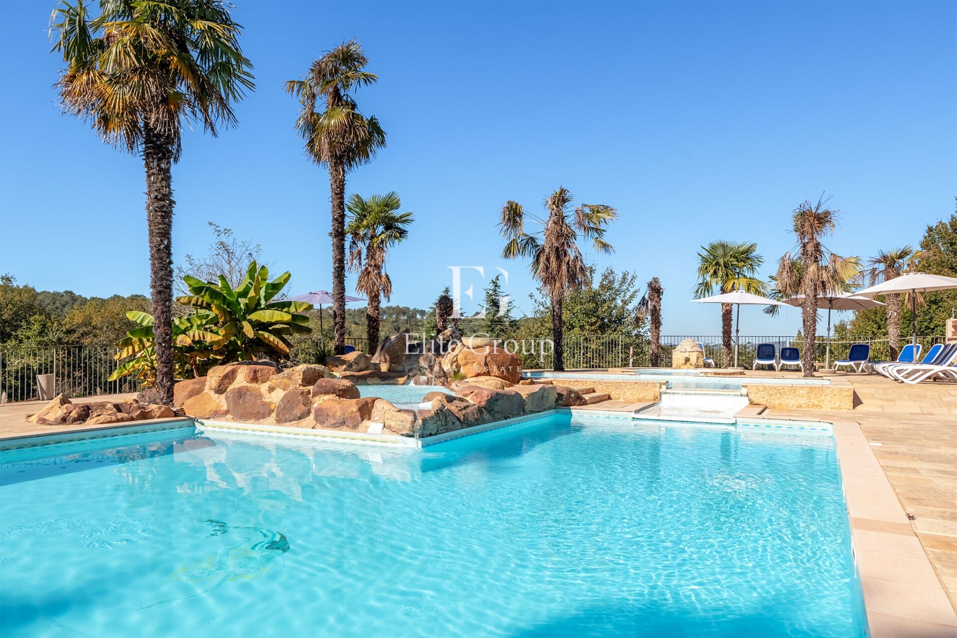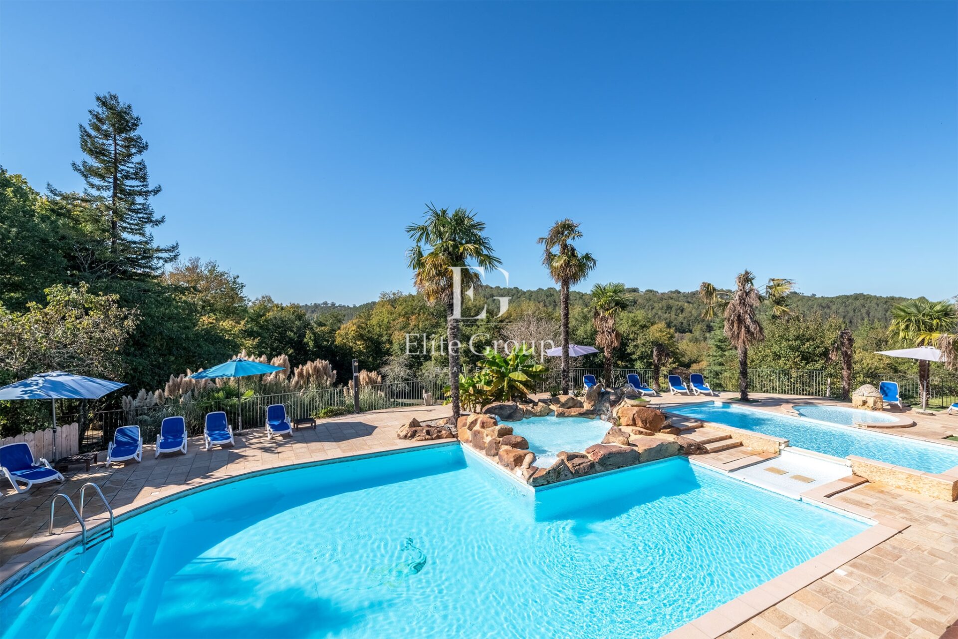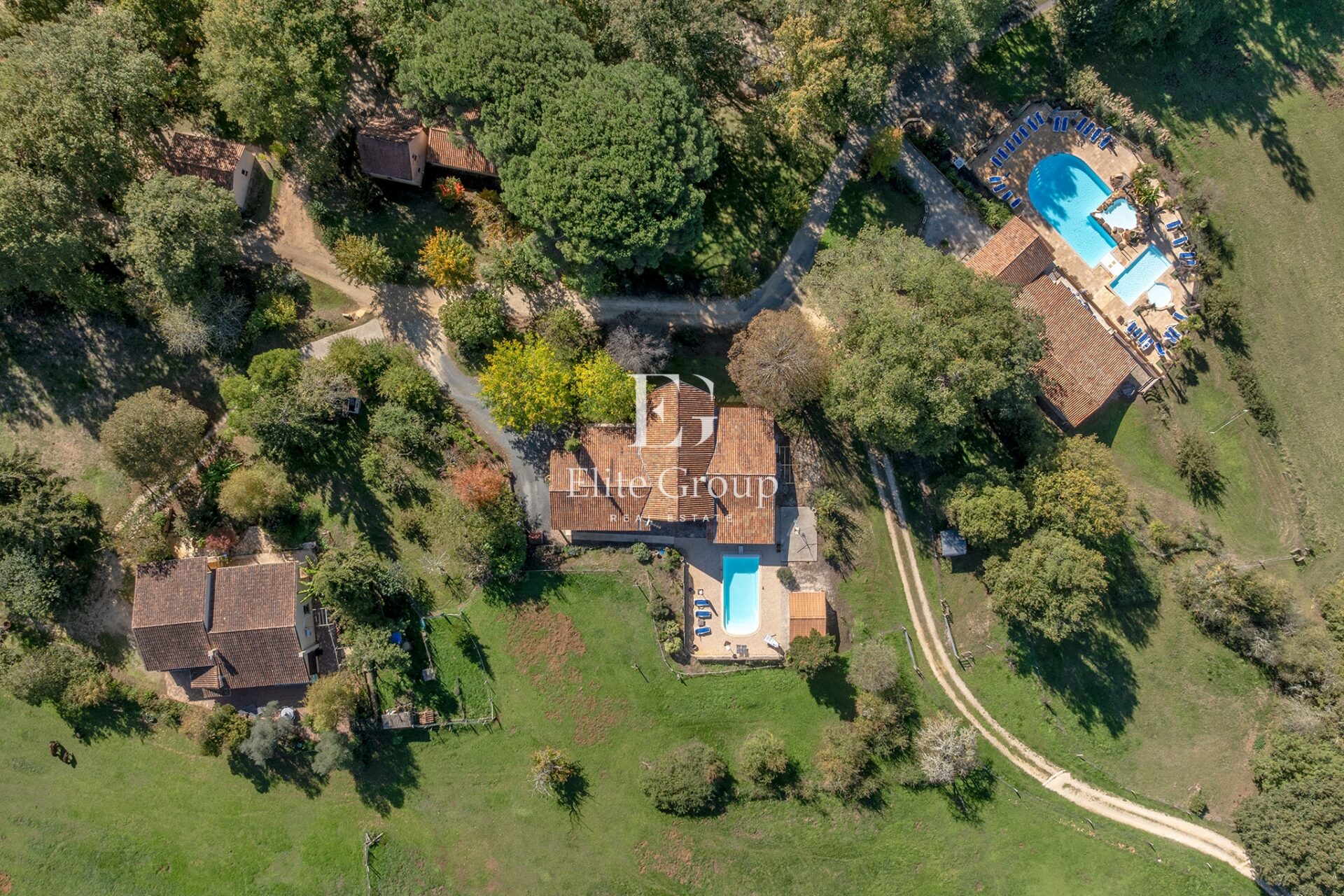 Reportage immobilier pour Elite Group à Larzac. Non pas sur le plateau du Larzac, rien à voir, mais à Larzac, petite commune située dans le sud de la Dordogne. Il s’agit d’un complexe touristique constitué de 14 gîtes, d’un minigolf, d’une piscine monumentale dominée par un poolhouse assez extraordinaire et de deux maisons d’habitation.
