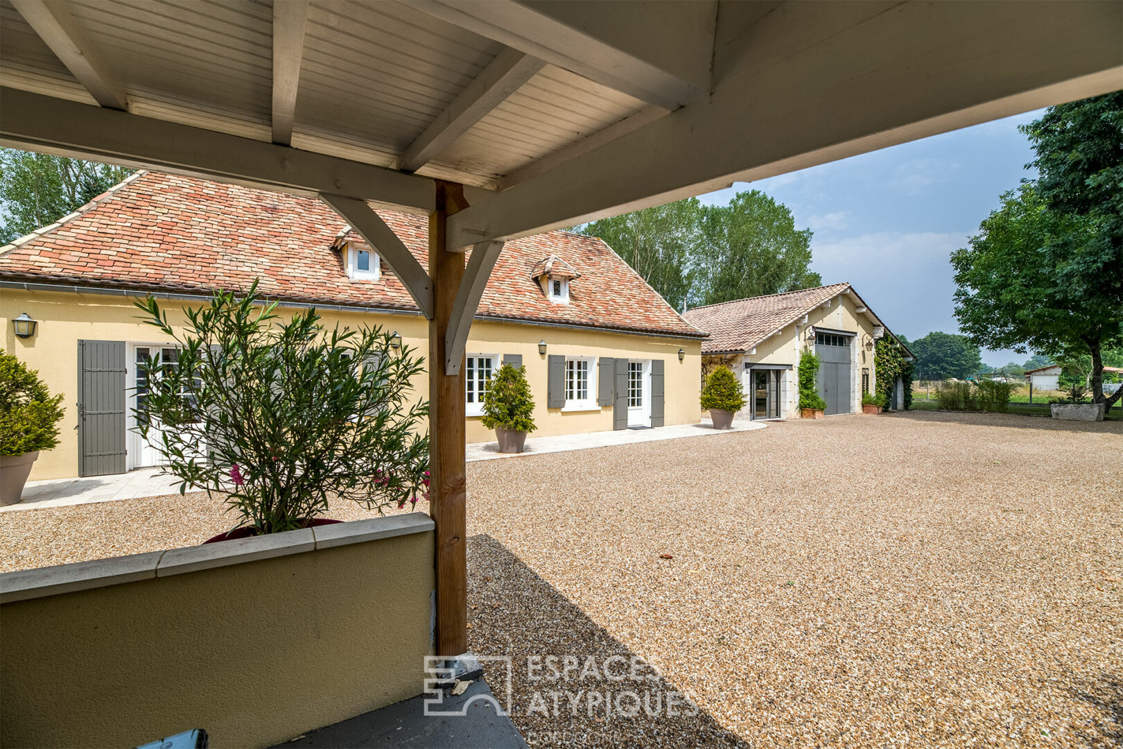 Au bout de l’allée il y a la maison principale, une grande dépendance et une cuisine d’été. A gauche de la maison un portillon dans une haie ouvre sur l’espace piscine.