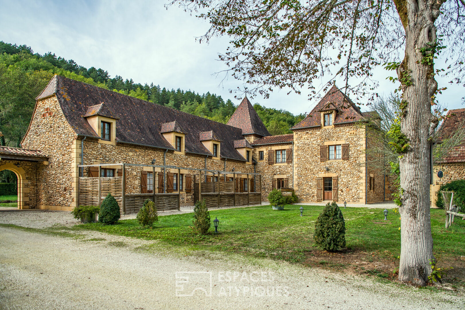 L’ensemble transpire l’architecture traditionnelle périgourdine par tous les pores de la pierre. Pourtant la construction est récente, 1997 (sauf le moulin qui lui est très ancien), mais ça aurait pu être bâti il y a 100 ans que ça serait tout pareil. Pierres blondes apparentes, murs épais, petites ouvertures, menuiseries à petits carreaux, tout y est !