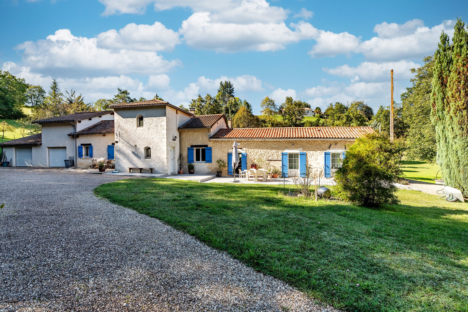 J’aime beaucoup la petite ville de Saint Astier, et ça tombe bien car Anthony de Vergt Immobilier m’appelle pour m’envoyer en reportage sur cette commune. La maison est retirée, elle est située au creux d’un vallon et est entourée d’un terrain immense en grande partie arboré. C’est photographiquement parlant (en fonction de son orientation) plutôt une maison du matin et nous sommes hélas en début d’après midi, le soleil est déjà orienté ouest et il projette l’ombre des arbres sur une grande partie de la maison.