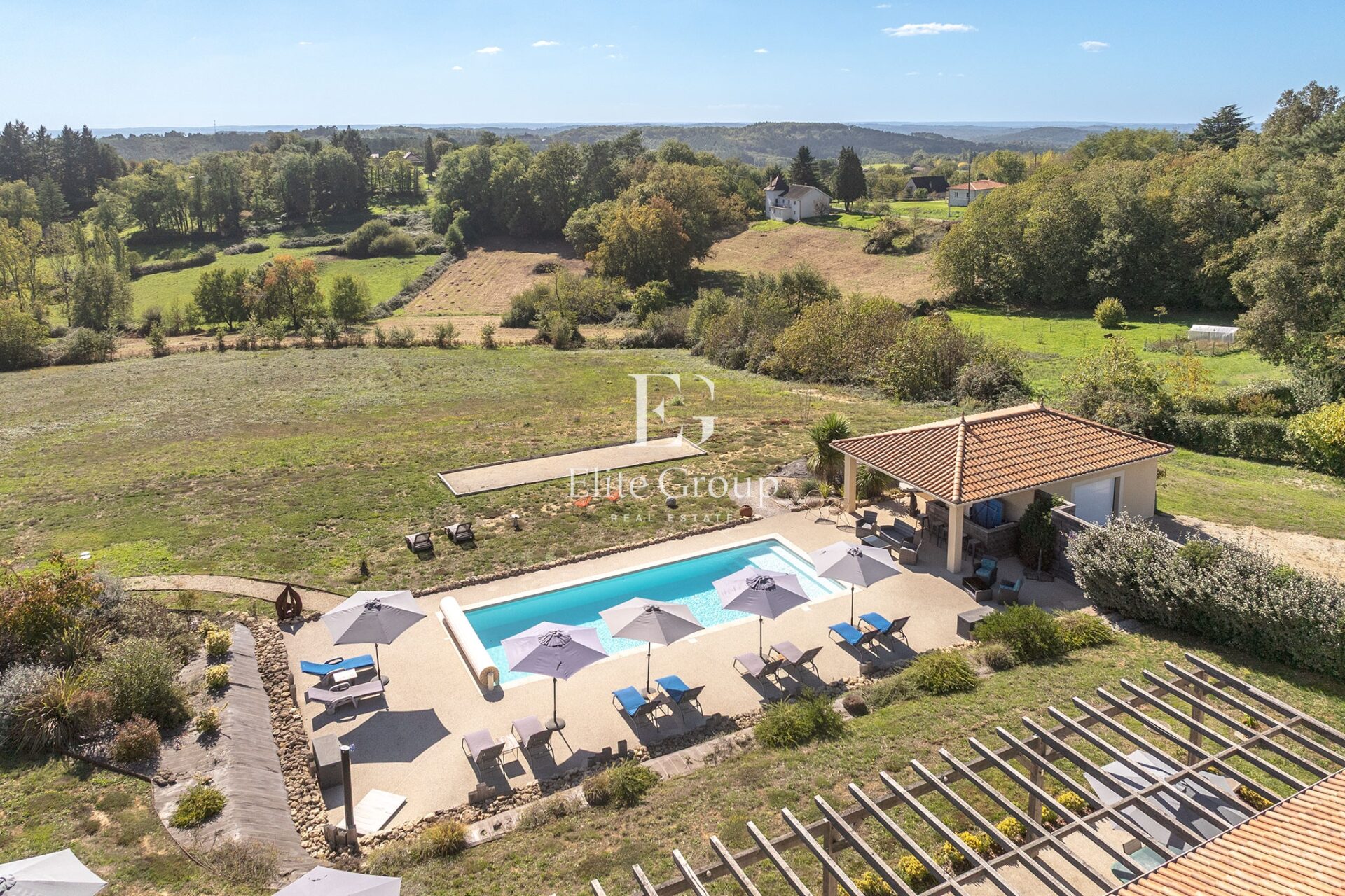Reportage immobilier (classique, drone et vidéo) à proximité de Sarlat pour le compte d’Elite Group Real Estate.