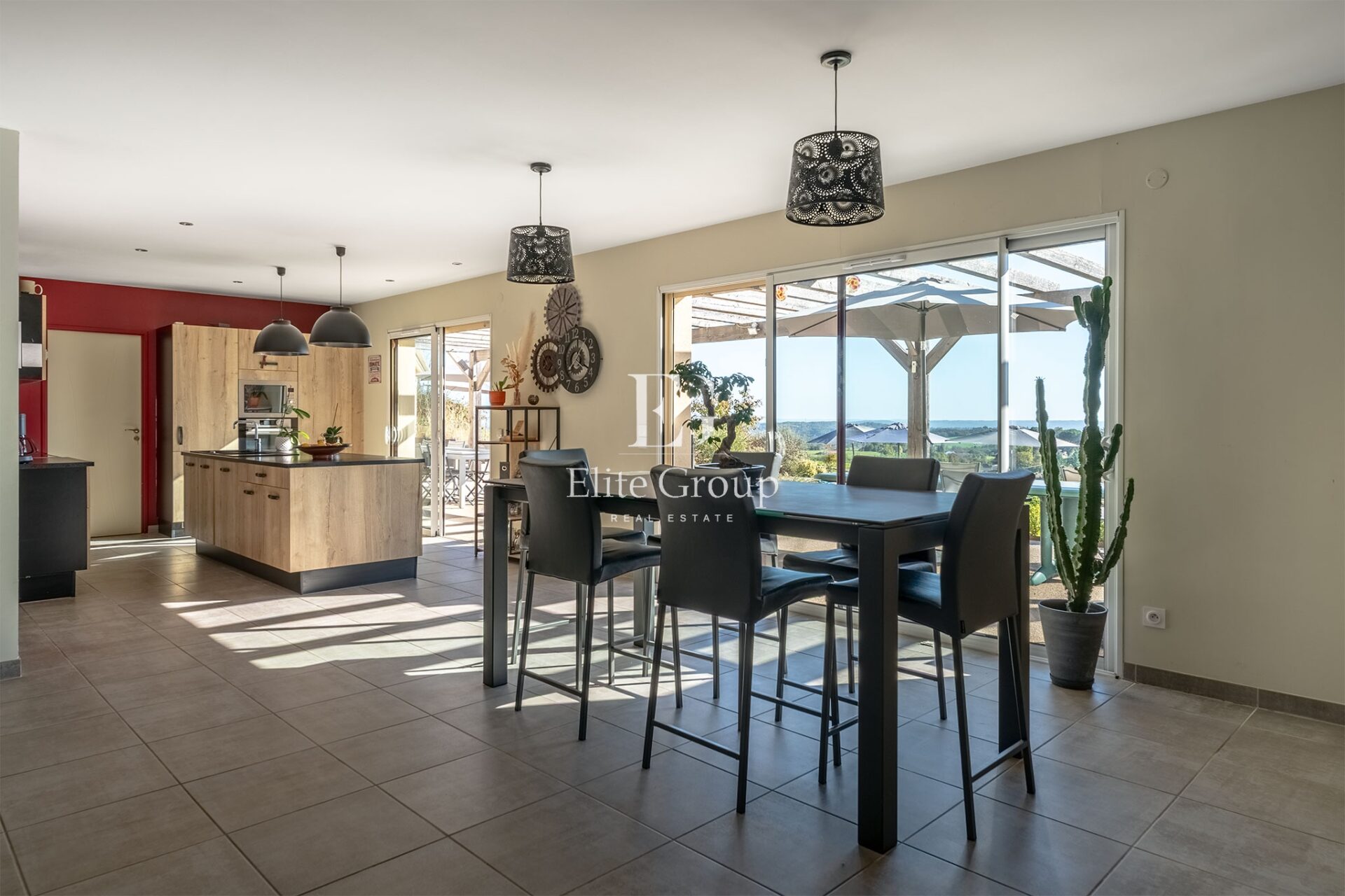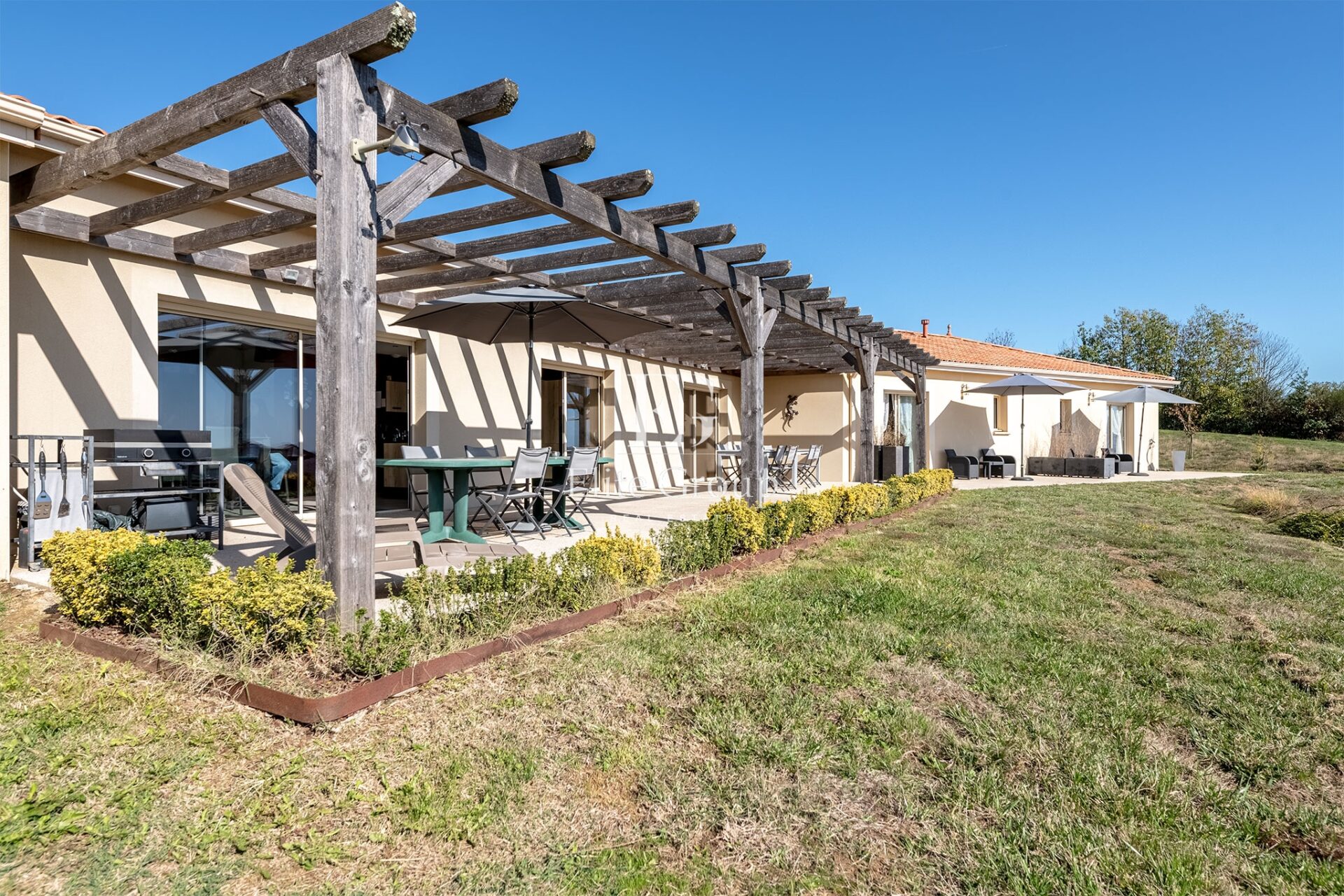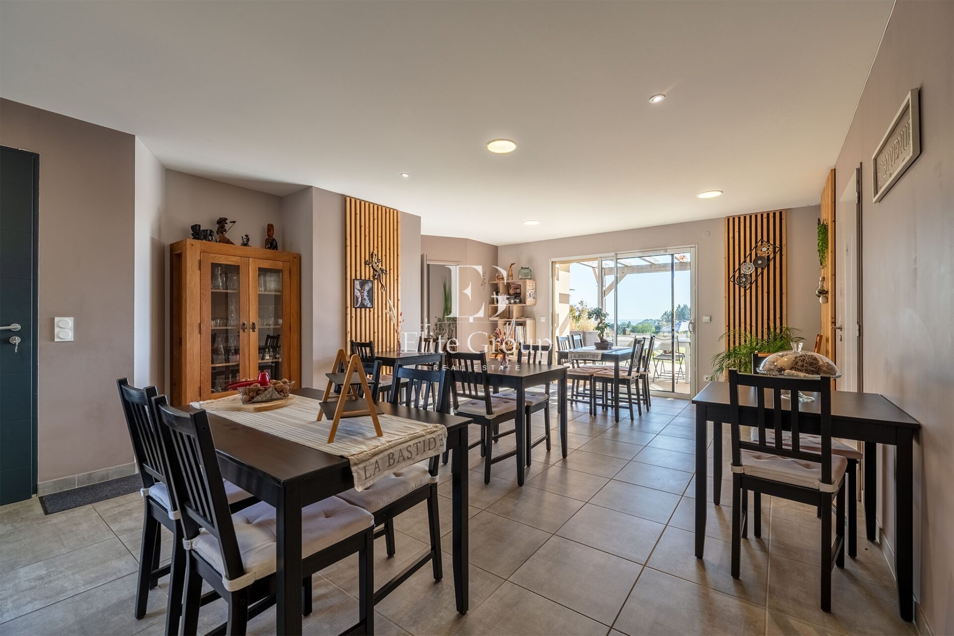 Pensée comme une véritable maison de famille et de réception, la propriété s’articule autour d’une spacieuse pièce de vie baignée de lumière avec cuisine contemporaine, d’une suite parentale ouverte sur la terrasse et de plusieurs chambres confortables. Indépendante, la partie dédiée aux hôtes propose cinq chambres chacune avec salle d’eau privative, dont une chambre PMR, offrant un potentiel idéal pour une activité de maison d’hôtes déjà structurée et immédiatement exploitable.