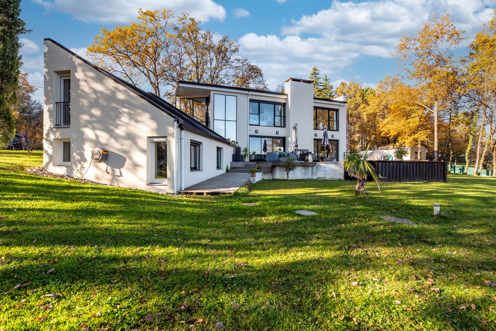 L’esthétique de la maison qui me concerne est magnifique, belle façade très contemporaine ouverte sur une vue à couper le souffle. Rien n’arrête votre regard qui va se perdre jusqu’à l’horizon. Des arbres à perte de vue !